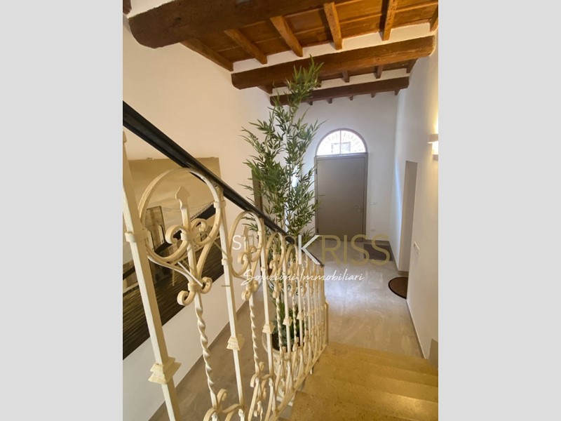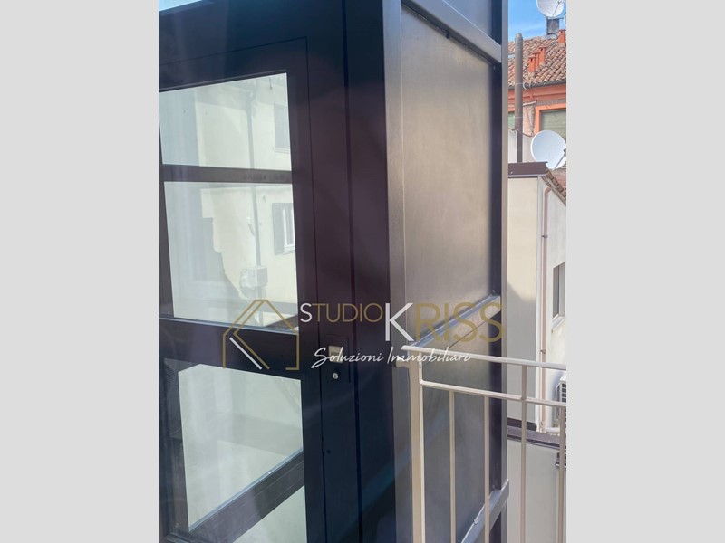 Luminoso e spazioso appartamento in affitto nel cuore del centro storico di Ferrara, situato al primo piano di un edificio con ascensore.