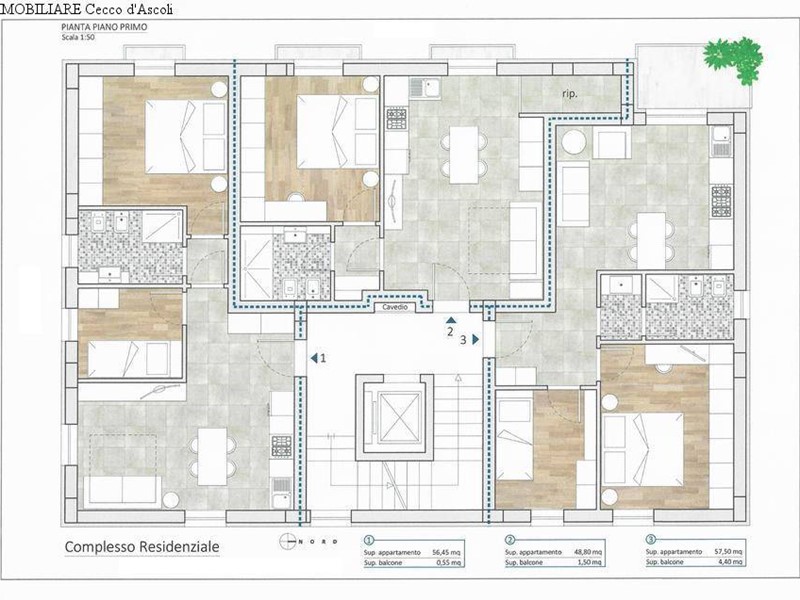 Il complesso residenziale viene realizzato nel centro della città, disposto su 4 piani, il piano terra ospita garage e fondaci, mentre gli altri 3 piani sono destinati al residenziale con appartamenti in classe energetica A4, finiture di lusso e disponibili con 1, 2, 3 camere.