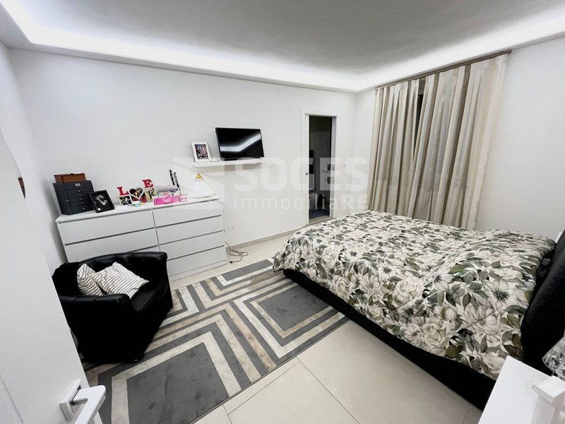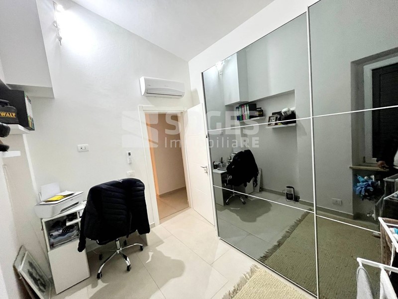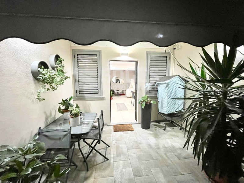 L'appartamento di circa 120 MQ (5 vani), è stato totalmente ristrutturato 2 anni fa (impianti elettrici ed idraulici inclusi), ed è così composto: resede pavimentato fronte entrata ad uso privato, ingresso nella zona giorno doppia, con disposizione soggiorno e sala da pranzo con angolo cottura. Zona notte composta da tre camere da letto, due bagni (di cui un bagno in camera), e ripostiglio/lavanderia.