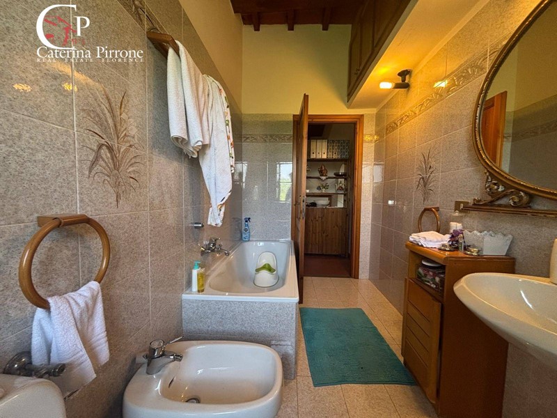 L'appartamento al primo piano, con ingresso indipendente da scala esterna, si compone di ampio salone con caminetto, cucinotto, tre camere matrimoniali e doppi servizi. L'appartamento al piano terreno, con ingresso dalla bella loggia frontale dotata di forno, è composto da ampio salone, cucinotto, due camere matrimoniali e due servizi.