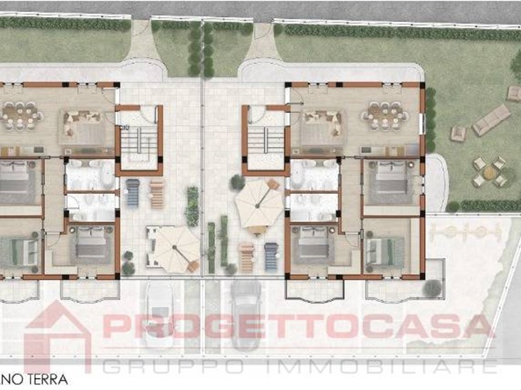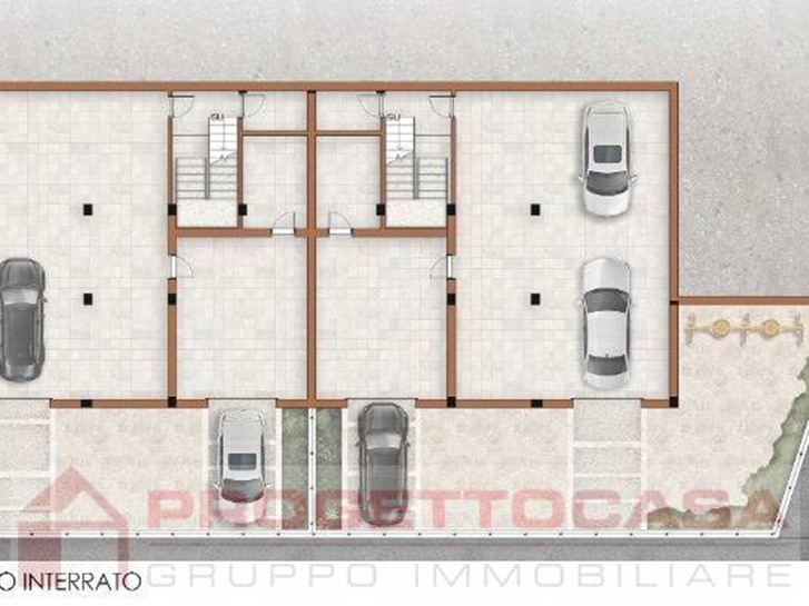 - Piano interrato: 160 mq circa composto da ampio garage di 100 mq, magazzino di 33 mq, ripostiglio di 10 mq e locale tecnico di 5 mq, spazi esterni di 100 mq con accesso carrabile indipendente che conduce direttamente ai posti auto coperti.