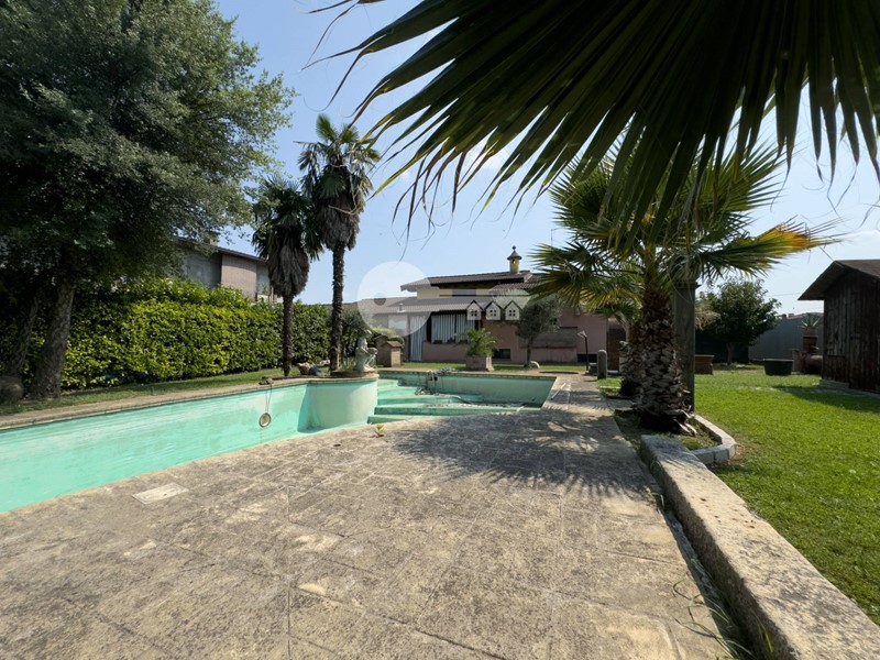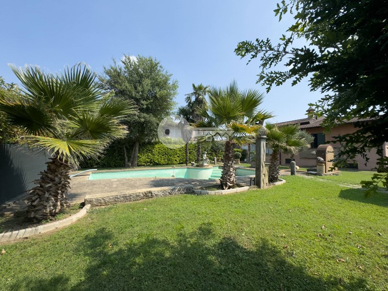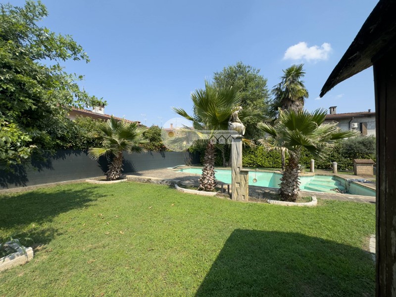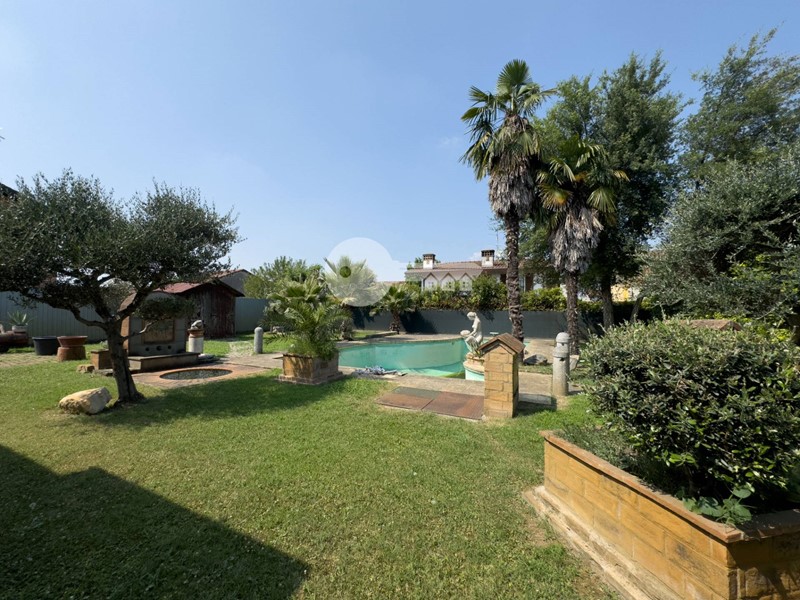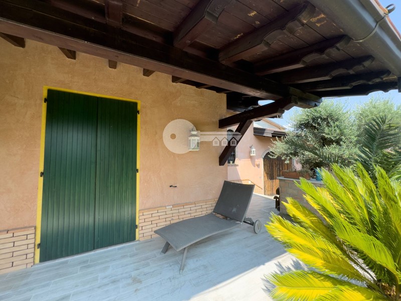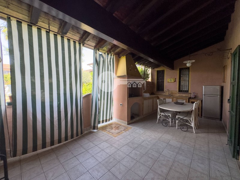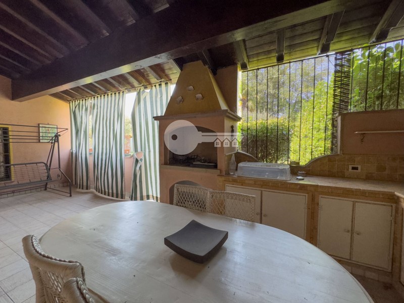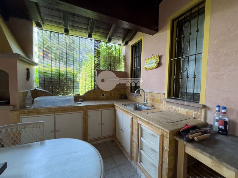 Il portico sul retro è completamente arredato con cucina in muratura e da accesso direttamente alla piscina interrata.