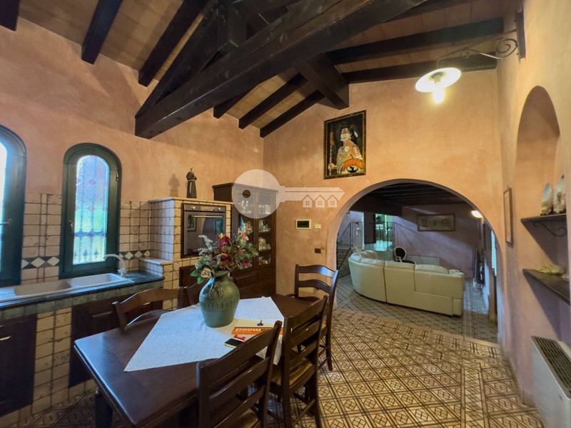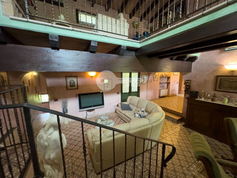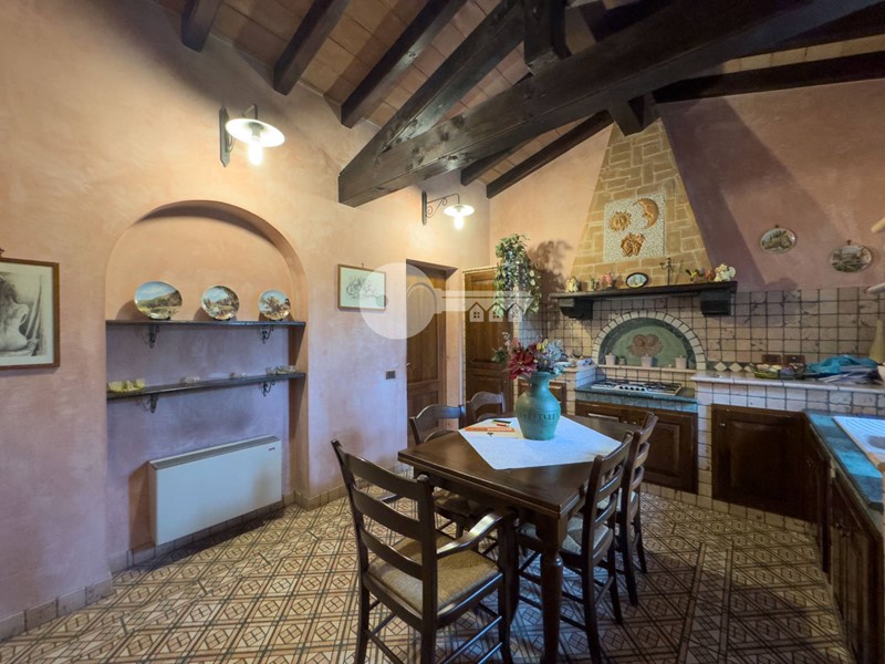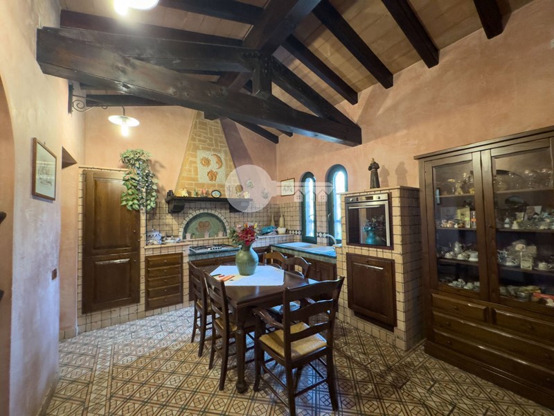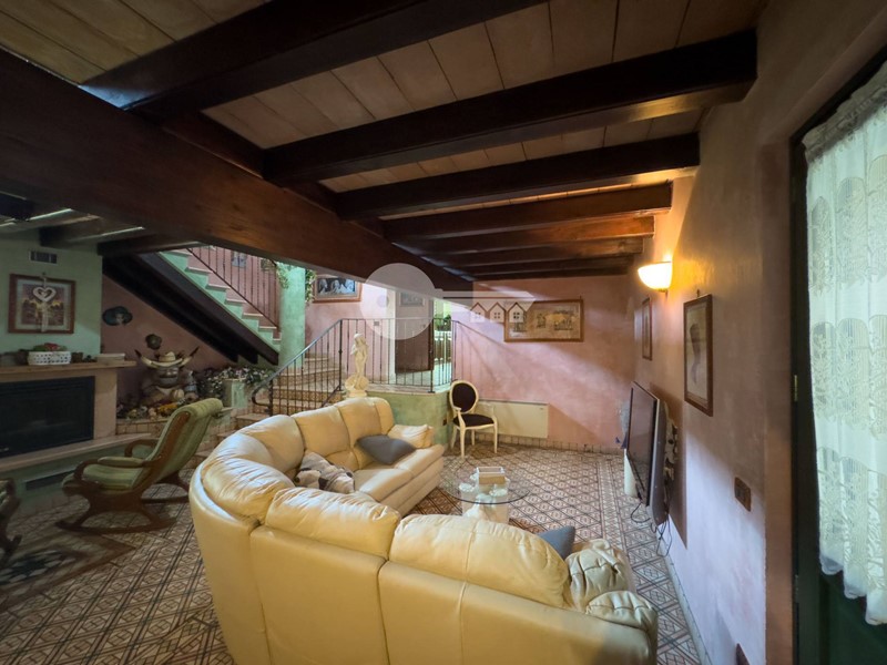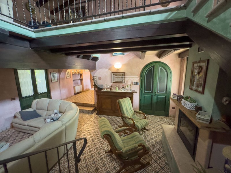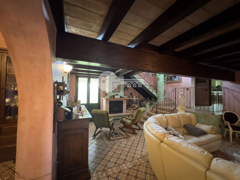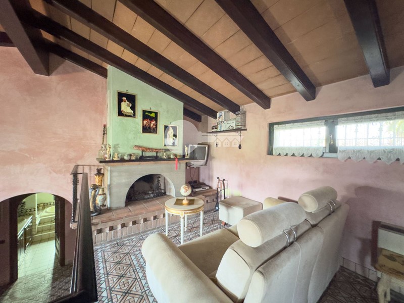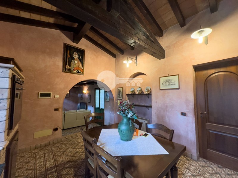 Accedendo dall'ingresso principale troviamo un'ampia zona giorno arricchita da camino e servita da porta finestra che porta al portico sul retro e una cucina a vista in muratura.