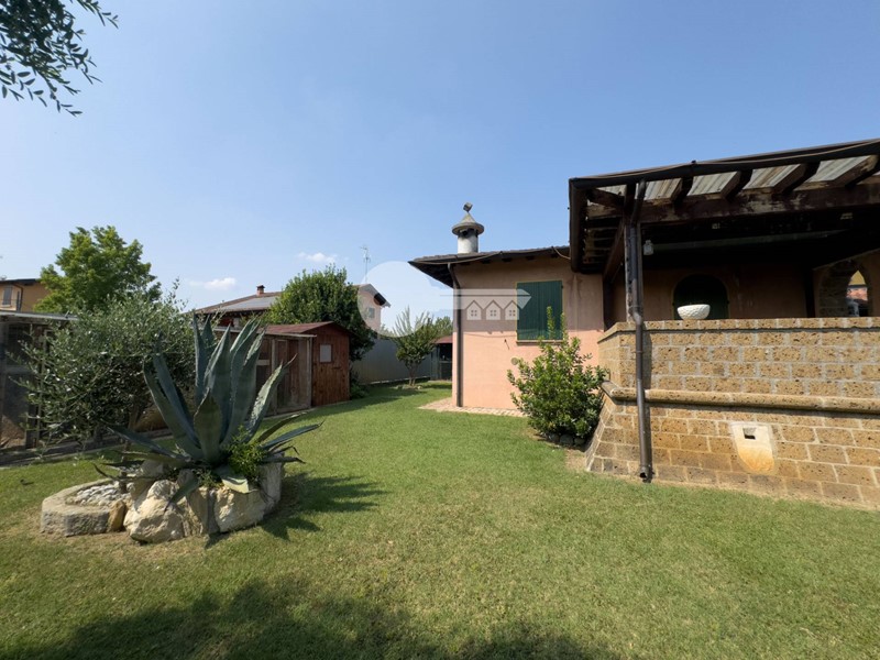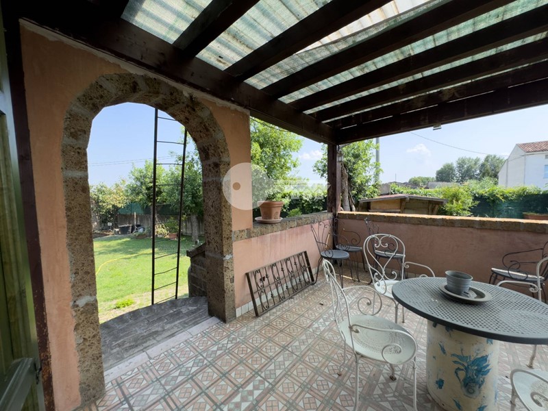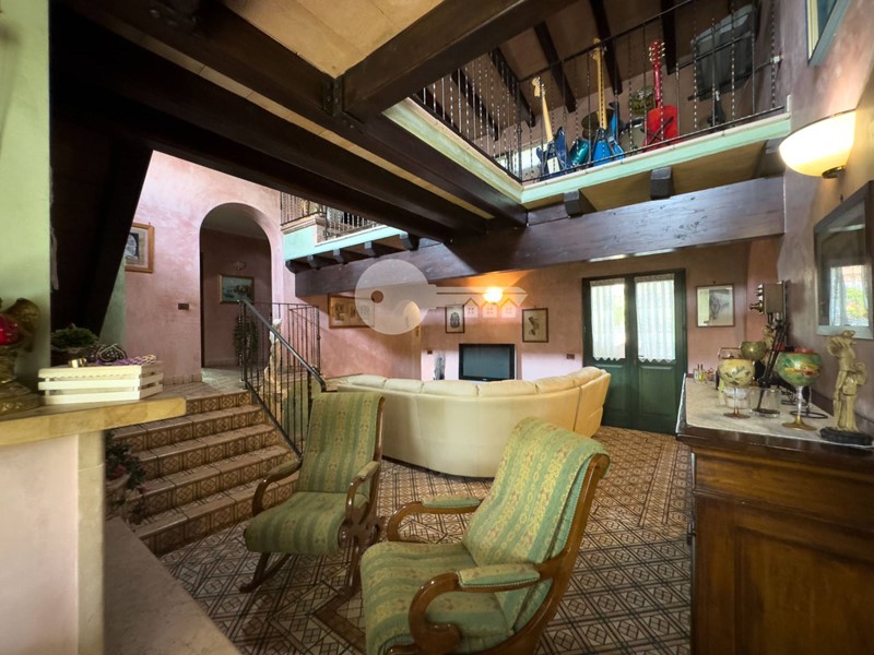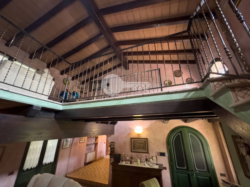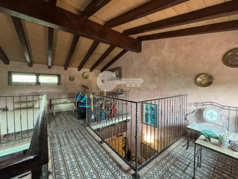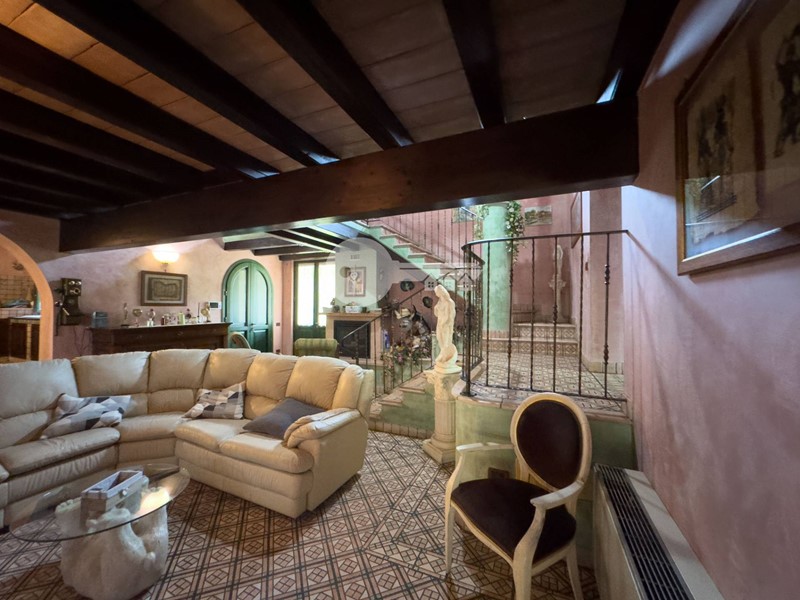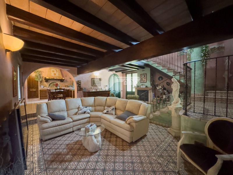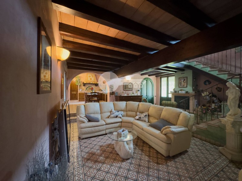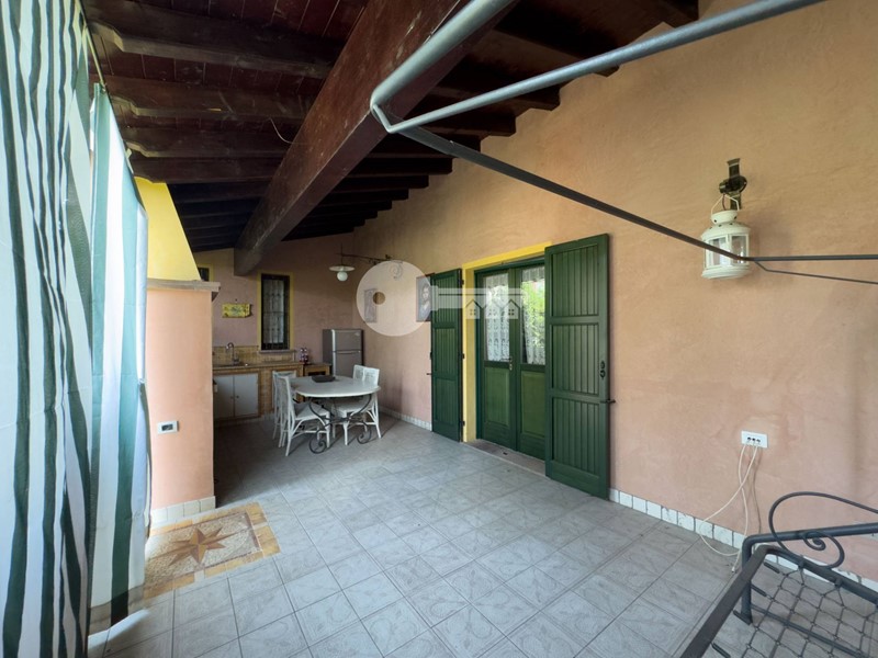Accedendo dall'ingresso principale troviamo un'ampia zona giorno arricchita da camino e servita da porta finestra che porta al portico sul retro e una cucina a vista in muratura.