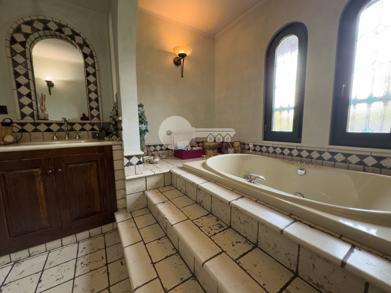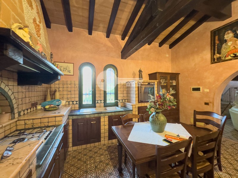 Al piano seminterrato grande taverna completa di cucina e bagno con doccia.