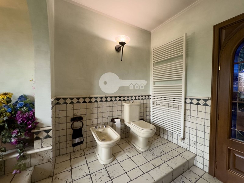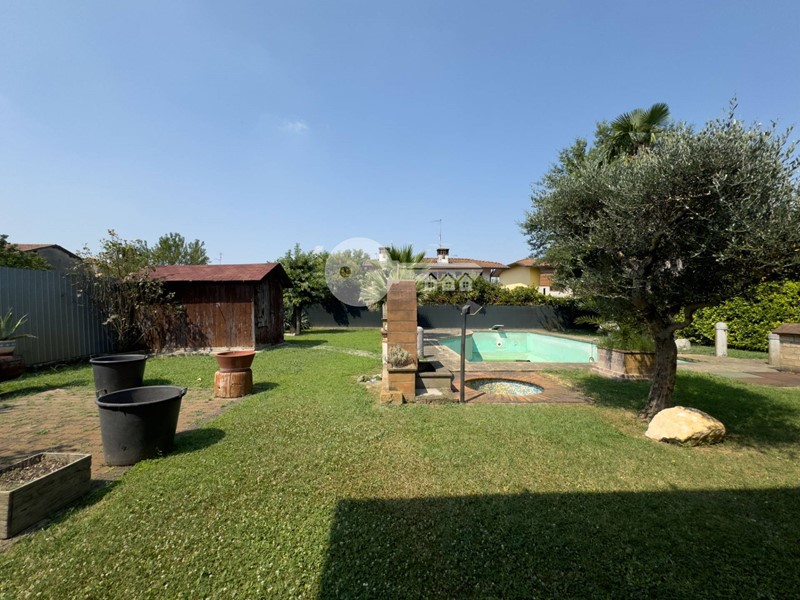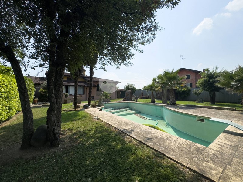 Completano la soluzione la lavanderia, i due garage doppi, i posti auto coperti da pergolato, la piscina interrata e tutta l'area verde sui tre lati la casa.