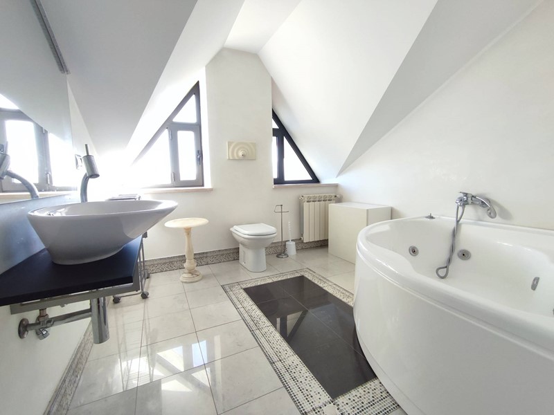 La soluzione, con spazi ampi e luminosi che si fondono armoniosamente con un design moderno e raffinato, si compone di ampio soggiorno con angolo cottura e canna fumaria, servito da terrazzo pamonarico di 20 mq ca, camera matrimoniale con cabina armadio, camera tripla e camera singola il tutto servito da balcone,comodo bagno con vasca idromassaggio jacuzzi, e bagno con doccia sauna, per vivere momenti di puro relax.