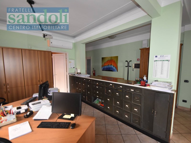 Di recente ristrutturazione con pavimentazione in ceramica omogenea in tutti locali e con infissi di ultima generazione finalizzati ad un notevole risparmio energetico, dall'ingresso tramite una signorile bussola foderato il legno e vetro, accediamo alla reception climatizzata da cui poi si raggiungono i vari locali dell'immobile adibiti ad uffici, sala riunioni ed archivio. Completano il piano un utilissimo ripostiglio collegato al bagno di servizio.
