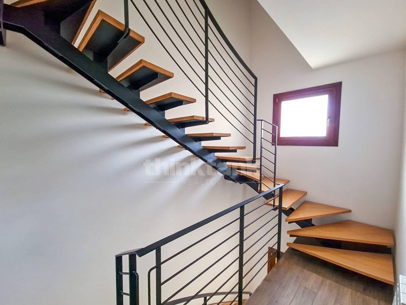 Salendo al primo piano si trova la zona notte, composta da tre camere da letto spaziose e luminose, ideali per assicurare il massimo comfort. Il bagno, elegante e ben rifinito, serve questa parte della casa, mentre le terrazze panoramiche regalano una vista unica, perfetta per chi ama gli spazi aperti e la luce naturale.