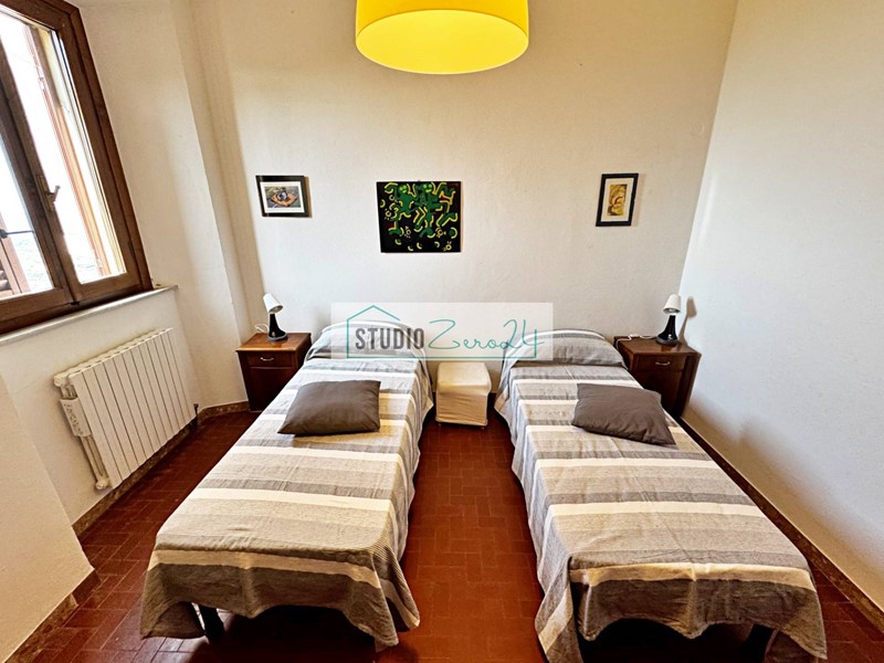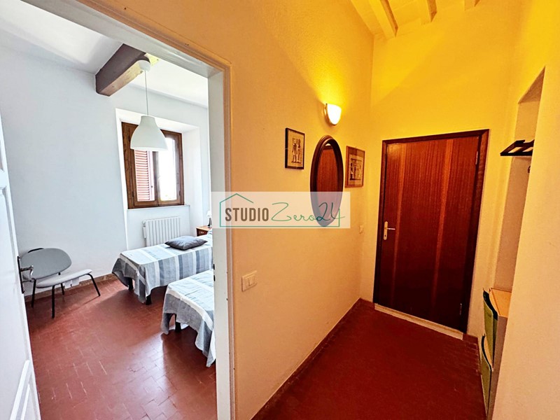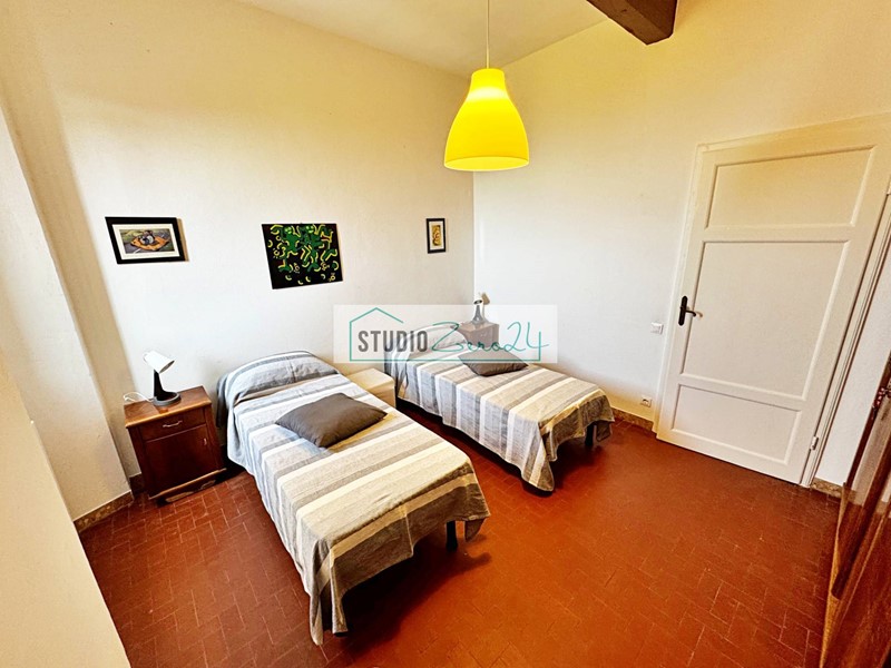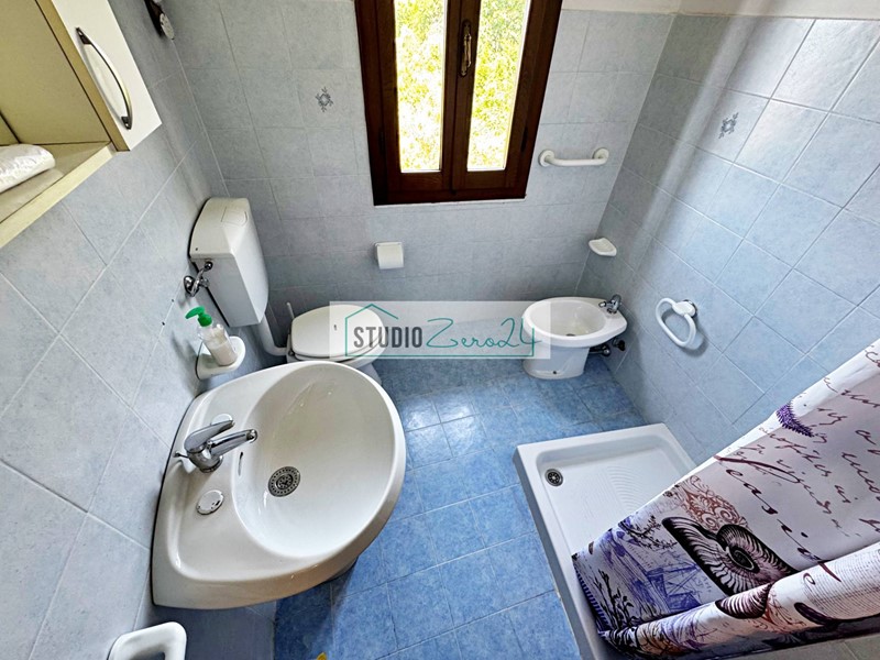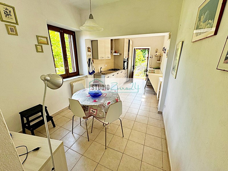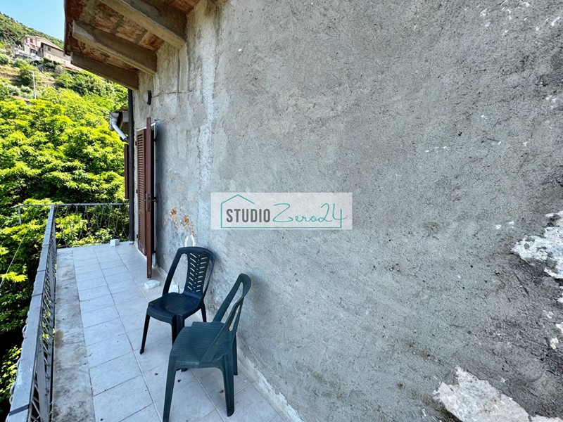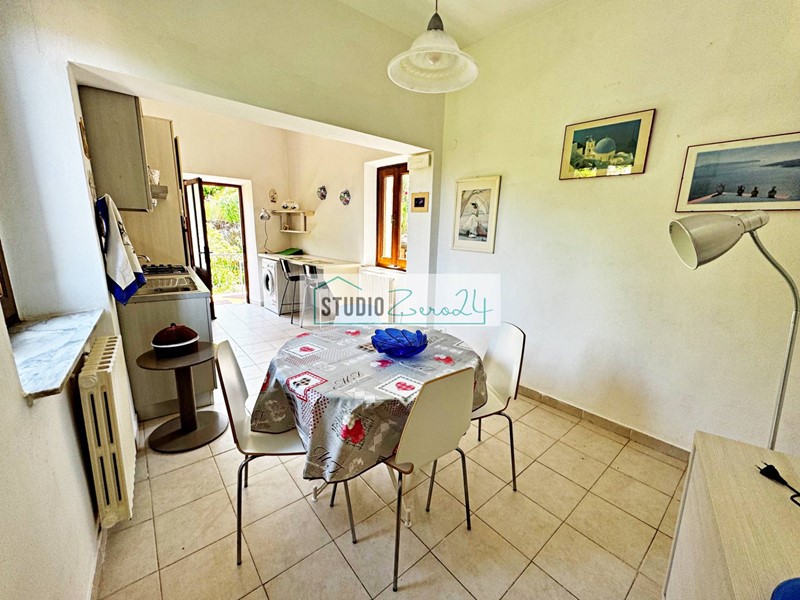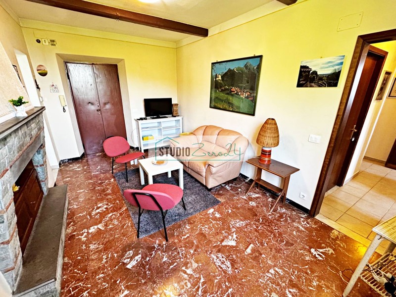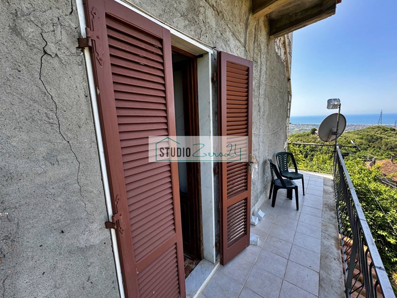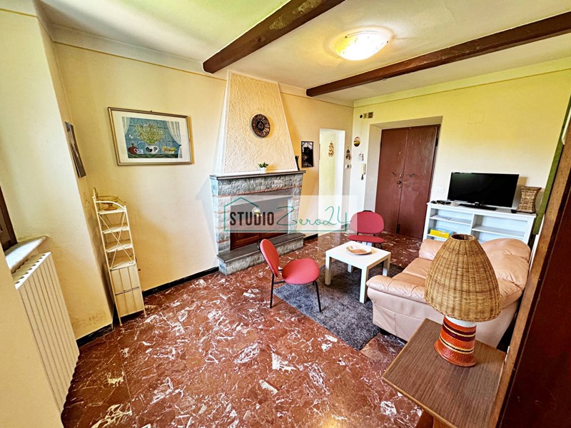 La proprietà è composta da una zona living con camino, cucina e sala da pranzo con terrazzino, una camera matrimoniale con terrazza vista mare, una seconda camera media e un bagno con vista sulle colline.