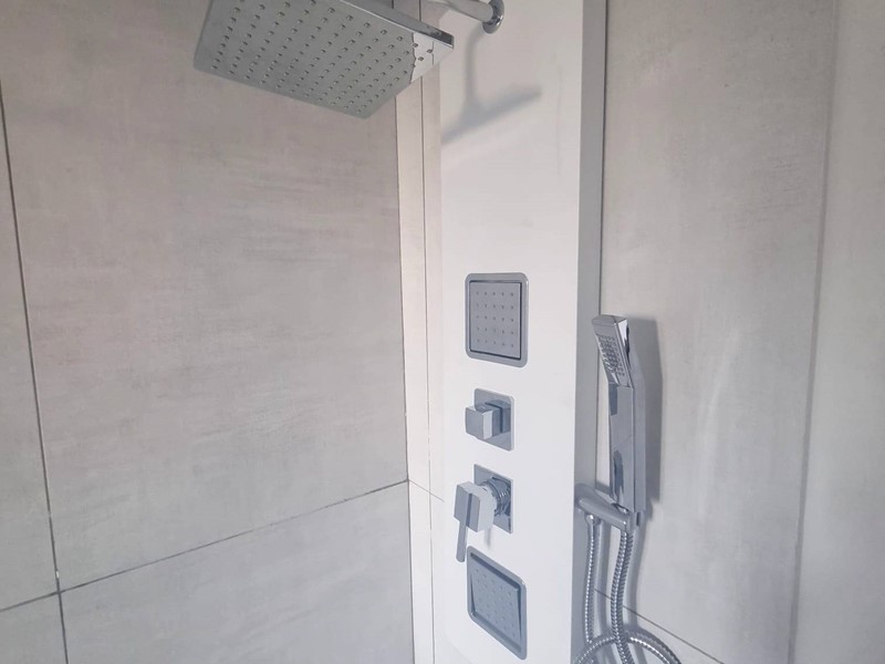 Nuovo impianto elettrico, serramenti nuovi in doppio vetro e pvc bianchi interno e legno esterni, porte interne bianche con maniglia slim in silver. Rasatura a gesso interrna.