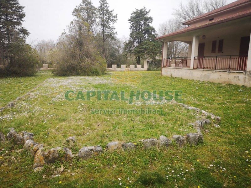 L'Agenzia Capital House propone in vendita una Villa immersa nel verde a soli 20 minuti da Cassino. La proprietà è composta da una superficie abitativa di 255 mq da rimodernare ma comunque abitabile, con annesso sottotetto e tre box auto. Internamente la casa è composta da ingresso, cucina, ampio salone con camino, bagno e sei camere da letto, ogn'una munita di bagno con doccia. Esternamente è caratterizzata da un bellissimo porticato di 100 mq. Labitazione è circondata da circa 22.500 mq di terreno in parte con ulivi e nocciole. Il terreno è attraversato da un bellissimo ruscello che rende l'ambiente molto suggestivo. Inoltre è presente un pozzo ed un forno a legna.