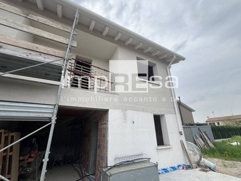 Questa spaziosa abbinata/bifamiliare in fase di ultimazione, con consegna a breve termine, potrà essere personalizzata secondo i gusti e le esigenze del futuro acquirente. Si sviluppa su due piani per una superfice di 120 mq. così distribuita, piano terra: ingresso su ampia zona giorno con ampia vetrata a ovest e accesso alla pompeiana e allo scoperto sui tre lati, una cucina abitabile di 15 mq., ripostiglio, bagno/lavanderia, garage comunicante con l'abitazione. Al piano primo la camera padronale da 19 mq. e bagno finestrato con accesso alla terrazza , altre due camere spaziose e bagno.