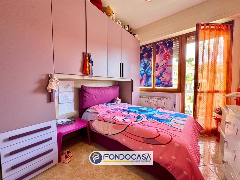 La zona notte è ben distribuita e comprende una camera matrimoniale, una cameretta con accesso diretto al balcone, ed un bagno finestrato con box doccia.