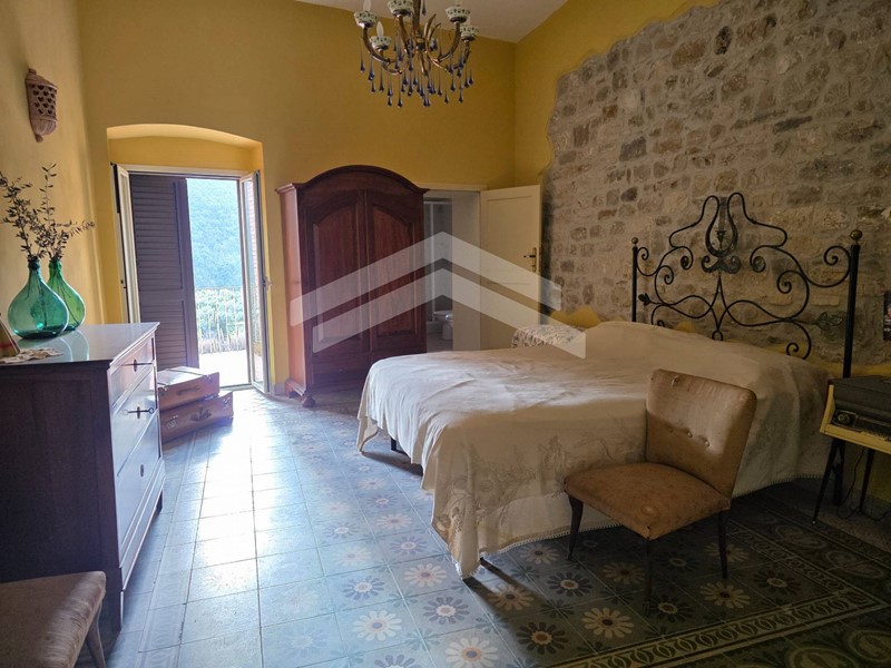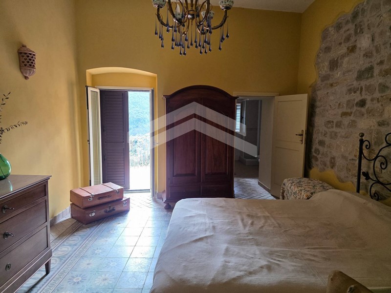 - Il secondo ingresso non indipendente porta al piano primo composto da: sala con camino in pietra e balcone con affaccio sulla strada, un'ampia camera finemente ristrutturata, un bagno e un terrazzo che regala una vista panoramica incantevole sulle dolci colline circostanti. Si completa con soffitto ideale come deposito.
