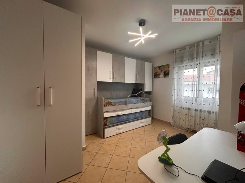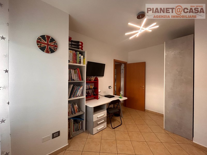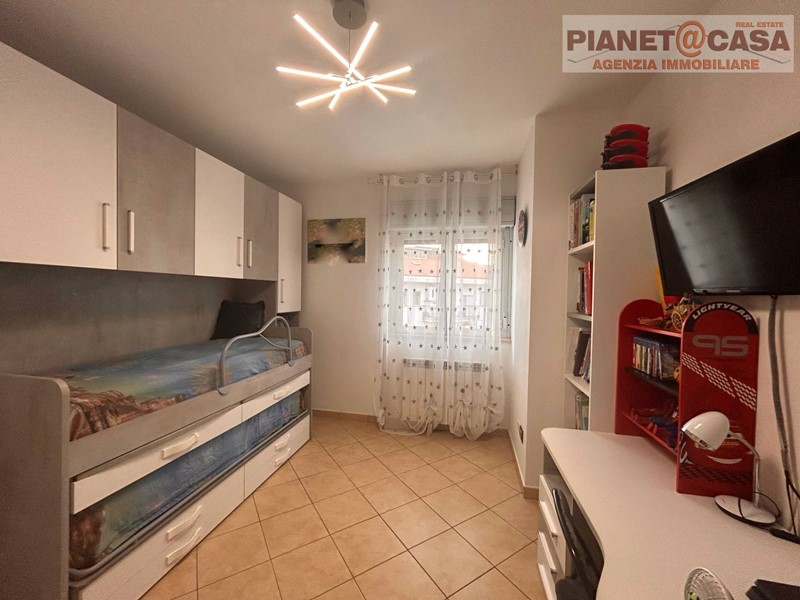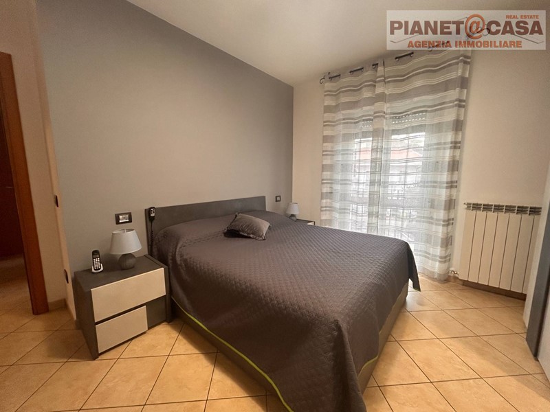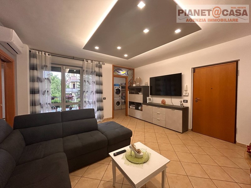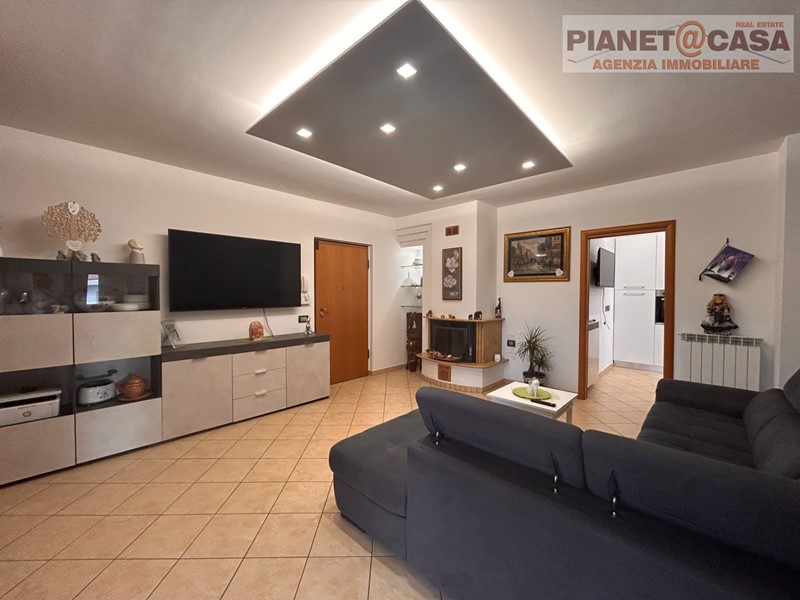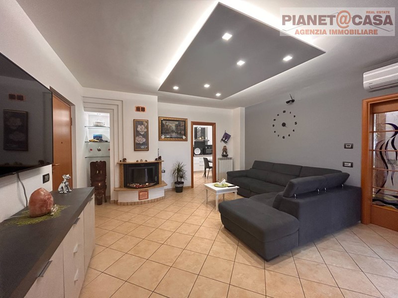 L' immobile, posto al Piano Primo con Ascensore in palazzina di recente costruzione, è composto da ingresso su ampio Soggiorno con camino, Cucina abitabile, Disimpegno, tre Camere da letto di cui una matrimoniale, una doppia ed una singola, due Bagni entrambi con doccia, oltre ad un ampio Terrazzo e due Balconi.