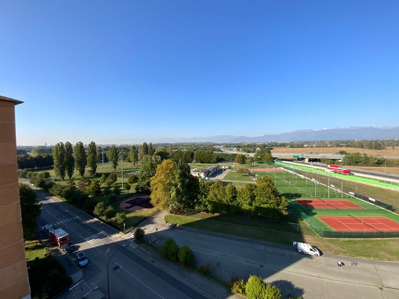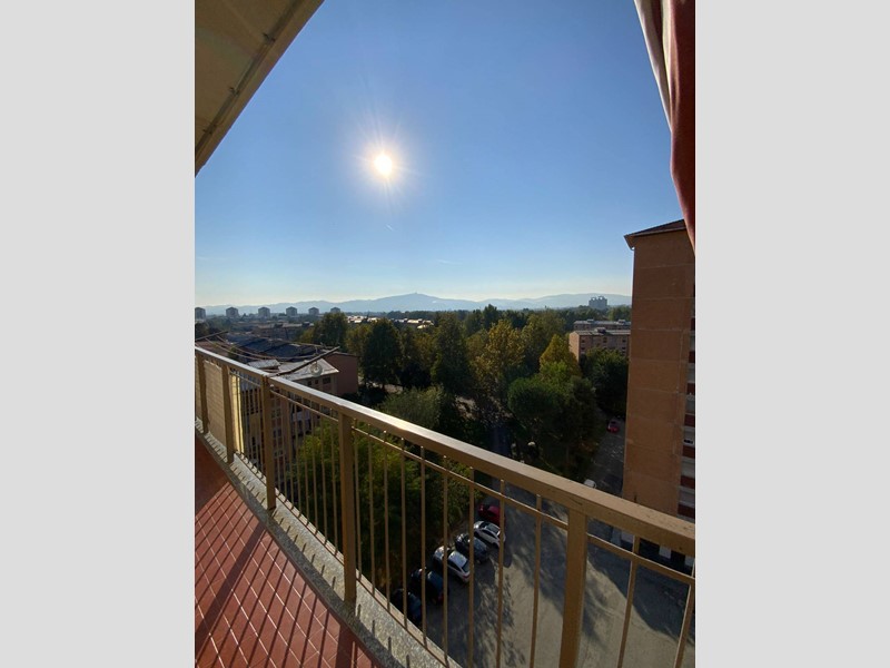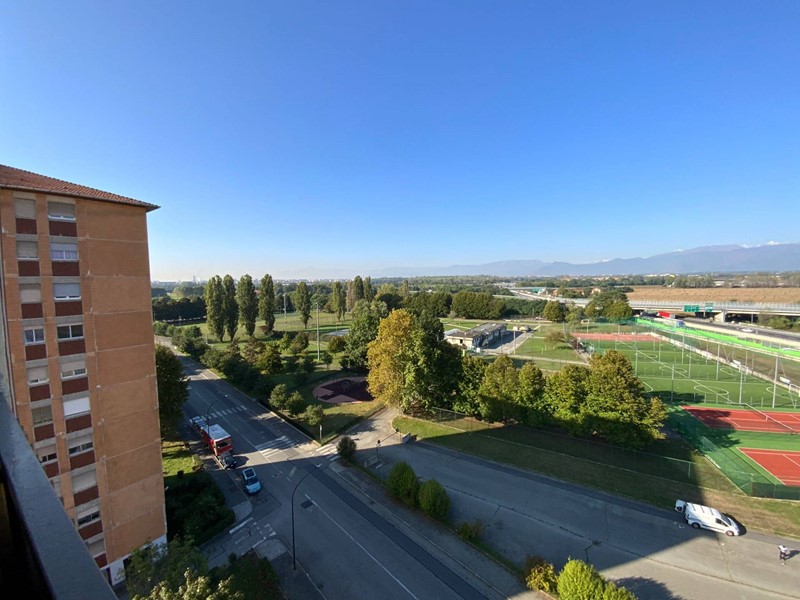 L'appartamento è collocato al piano ottavo in uno stabile anni '70 di dieci piani, ed è composto da ingresso su ampio soggiorno, con balcone vista Superga, cucina abitabile dotata di balcone con vista campi sportivi e tangenziale.