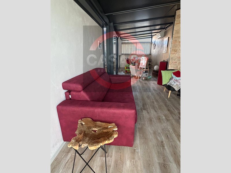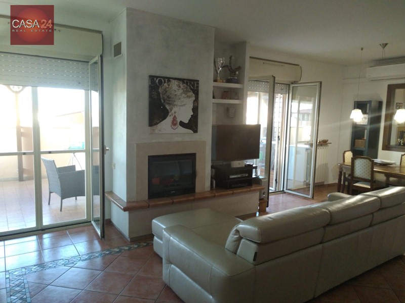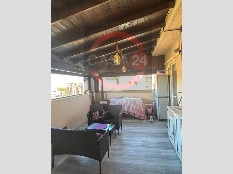 Questo attico, di una metratura ampia è composto da: salone doppio con camino, cucina abitabile, terrazzo di 40 mq attrezzato con barbecue e coperto con tettoia in legno, 3 ampie camere, due bagni con finestra, lavanderia e ulteriore terrazzo di circa 60 mq, in parte scoperto ed in parte coperto.