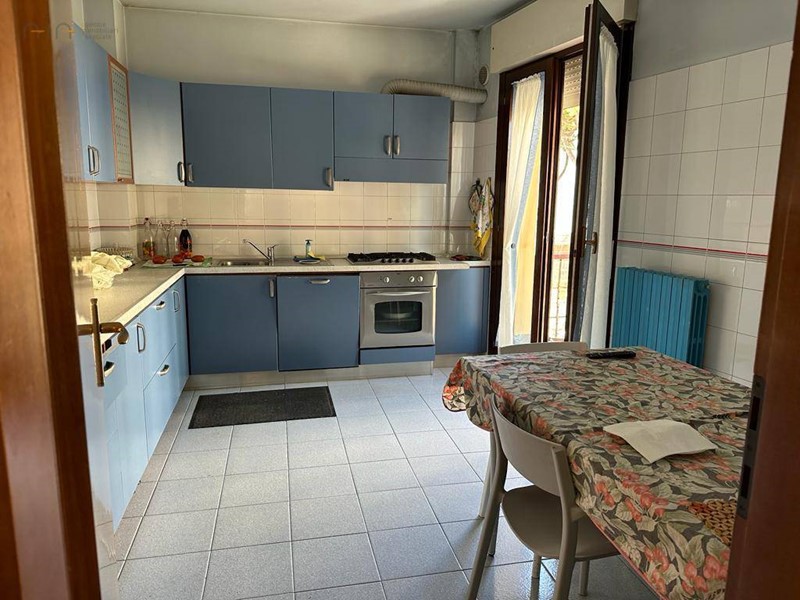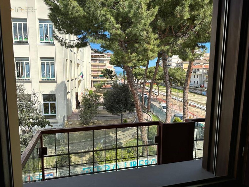 Appartamento delle dimensioni di circa 135 mq, posto al secondo piano e completo di ingresso, ampio soggiorno con camino e vista mare, cucina abitabile, tre camere da letto di cui due matrimoniali e una doppia, due bagni di cui uno con finestra, ripostiglio, 5 balconi per complessivi 12 mq circa oltre a doppia cantina di circa 15 mq al piano seminterrato. L'immobile si presenta in buone condizioni rifinito con materiali tipici dell'epoca di costruzzione ( anni 90'), pavimentazione in granito nel reparto giorno e monocottura nel reparto notte e cunica, infissi in legno con vetro camera, portoncino blindato ed impianti autonomi e a norma. L'appartamento è inserito in un piccolo ed elegante contesto condominiale a ridosso dell'isola pedonale e vicino al mare.