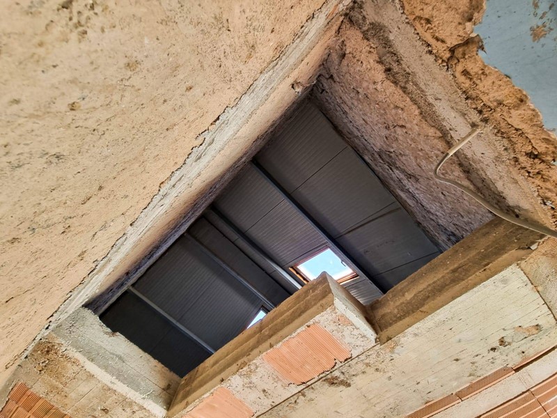 Dalle foto potete notare che la parte alta dell'immobile è stata già completata da finestroni tipologia Velux.