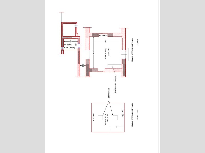 L'immobile è così composto: piano giorno e piano notte di c.ca 30 mq ciascuno con ottima esposizione fronte strada, esattamente sulla nota chiesa di San Francesco D'Assisi.