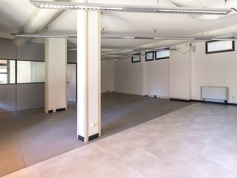 L'immobile, al piano terra, si compone di due locali, due bagni e quattro vetrine che si affacciano su una strada di passaggio, garantendo un'ottima visibilità e possibilità di pubblicità per la propria attività professionale.