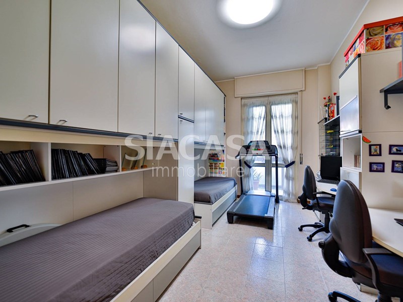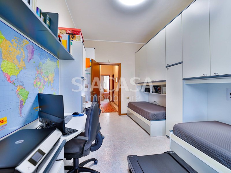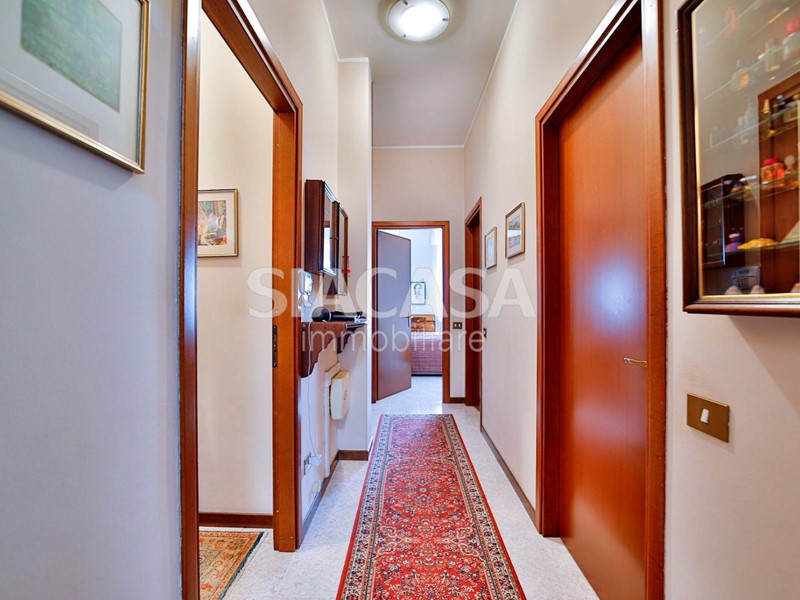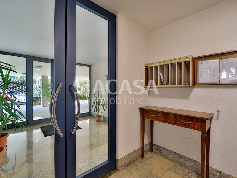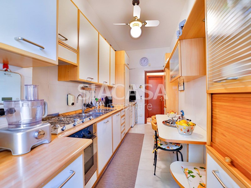 L'appartamento è dotato di un doppio ingresso sul vano scale con porta di servizio che accede direttamente alla cucina.