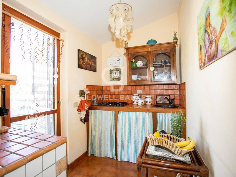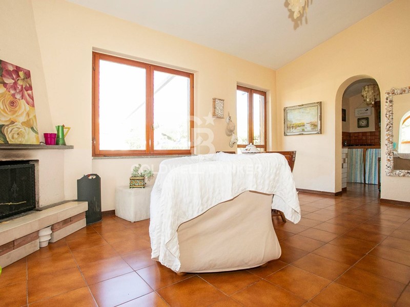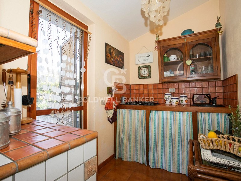 Entrando, sarai accolto da un luminoso soggiorno con camino, ideale per creare un'atmosfera calda e accogliente. La veranda, con le sue ampie vetrate, si affaccia sul giardino, permettendo alla luce naturale di inondare gli spazi interni. Il cucinotto, dotato di porta finestra, offre un accesso diretto al giardino e alla parte frontale della casa, pavimentata e perfetta per pranzi e cene all'aperto durante la bella stagione.