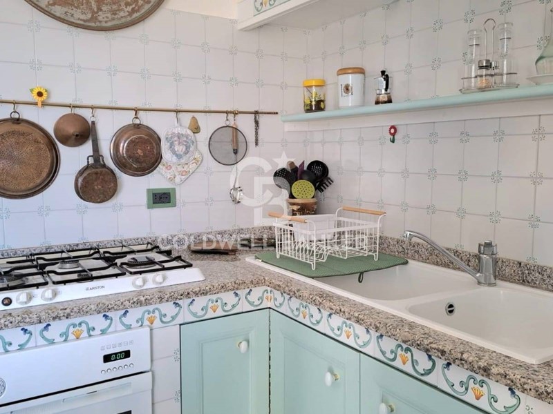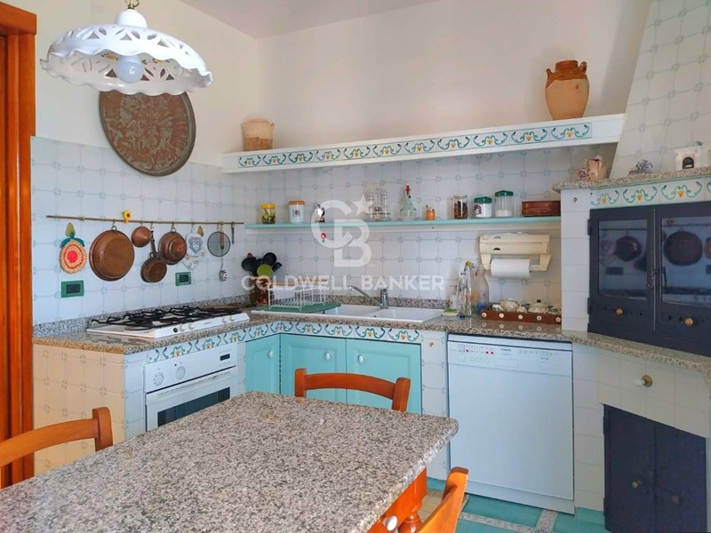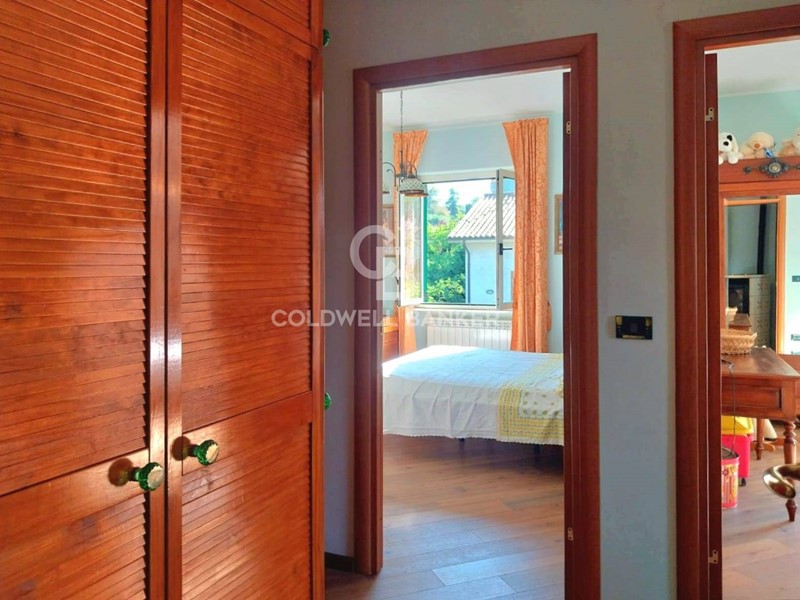 Il piano terra è suddiviso in salone con camino, disimpegno con armadiature a muro, cucina, due camere matrimoniali, due bagni, uno studiolo.