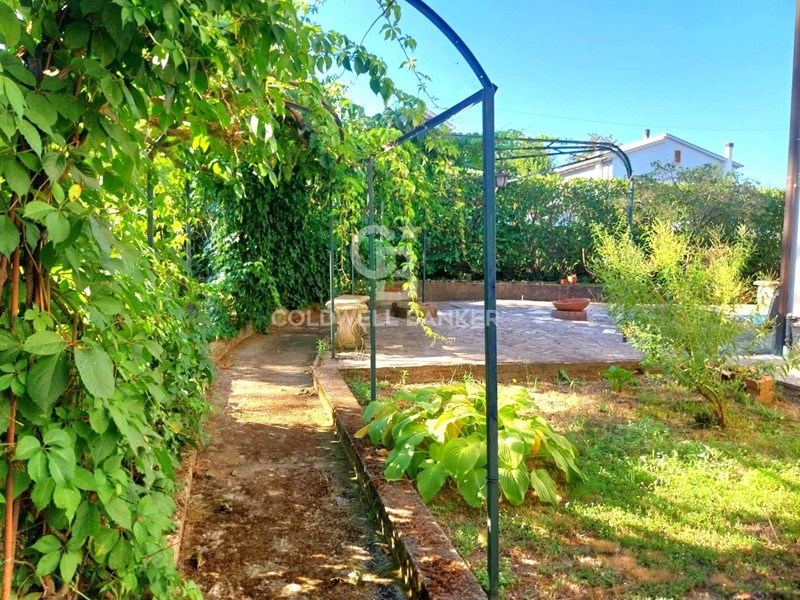 Il giardino è dotato di illuminazione, aree a verde ed aree pavimentate; offre anche un ampio garage con acqua e luce, con doppio accesso e 4 locali interni, oltre ad una dependance con bagno, riscaldamento e pale di ventilazione, dotata addirittura di impianto televisivo.