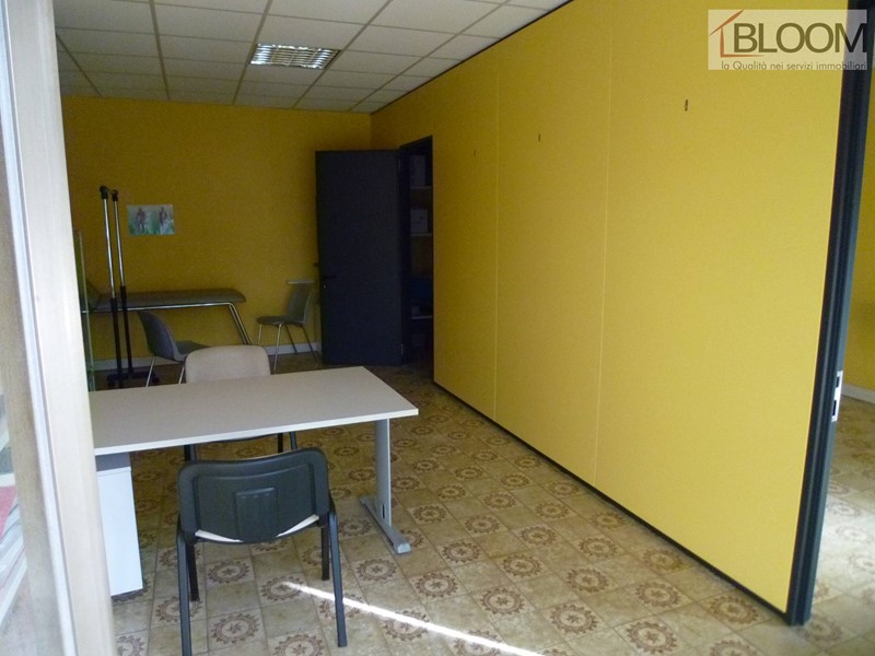 L'ufficio, di circa 50 metri quadrati complessivi, dispone di due locali separati da pannelli che possono essere facilmente rimossi per creare un ambiente più ampio e luminoso.