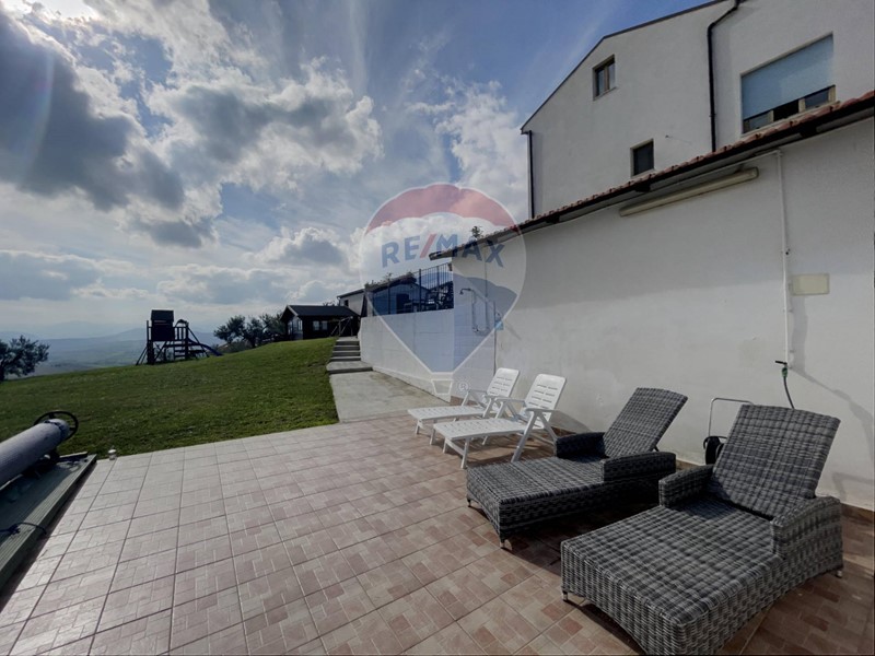 La proprietà è composta da un fabbricato ad uso residenziale su due livelli con ben tre ingressi indipendenti, attualmente adibito come affitta camere con superficie totale di circa 200 mq. Le camere a disposizione sono cinque di cui una con ingresso indipendente, tutte dispongono di servizio privato, grande cucina conviviale, soggiorno, grande soffitta, terrazzo. Completano il compendio immobiliare: 12.400 mq per la maggior parte adibito ad uliveto con ulivi secolari; una grande rimessa, all'epoca chiamata "il Fienile"; una preziosa Rimessa attrezzi ed una Piscina "fuori terra" posizionata splendidamente per godere della pace e per il risveglio dei sensi.