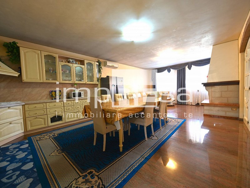 L'immobile si sviluppa su tre piani, due fuori terra piu' interrato. Zona giorno che tra pranzo/soggiorno e cucina attualmente separata sviluppa circa 95 mq, bagno, lavanderia e locale tecnico. Al piano primo tre grandissime camere matrimoniali di cui due con terrazza, bagno, disimpegno e ripostiglio. Al piano interrato spaziosissima taverna, bagno, cantina, ripostiglio ed altri locali accessori. Garage al piano terra. Contesto privato di circa 600 mq.