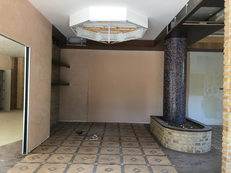 pavimento galleggiante in legno e controsoffittatura con faretti incassati