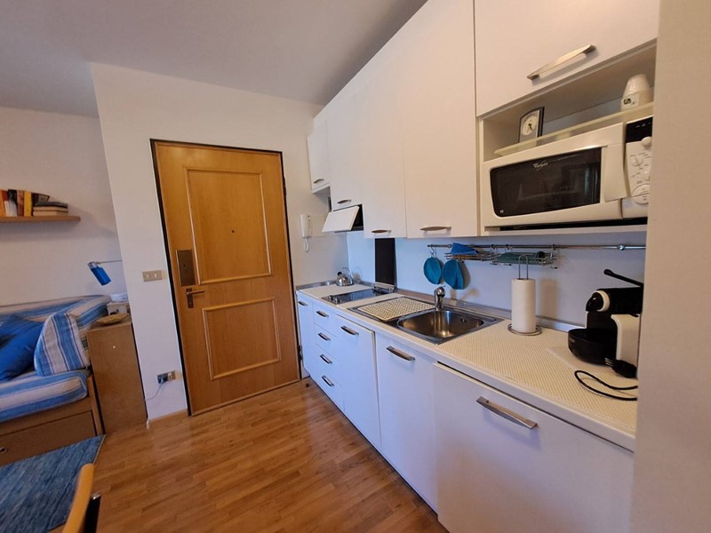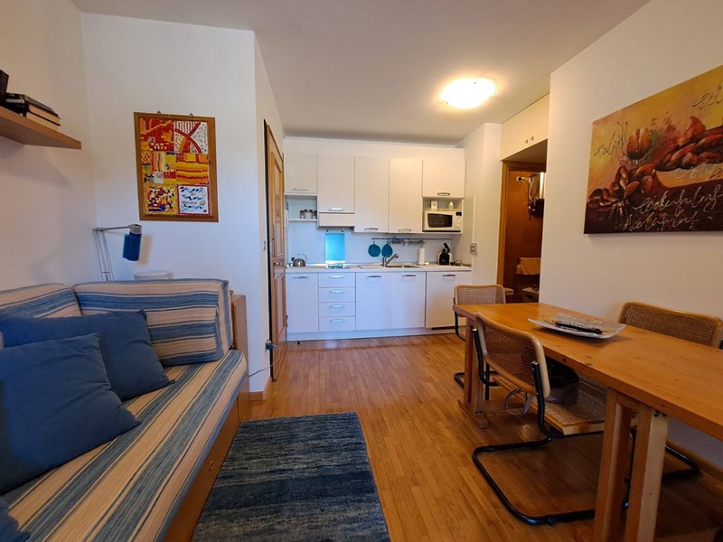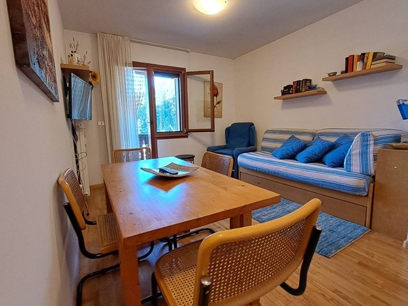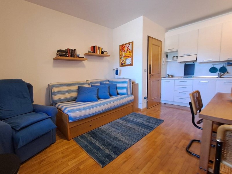 In caratteristico ed elegante edificio, vicinissimo a impianti di risalita e in zona servita, bilocale completo di ampia e panoramica terrazza con affaccio sulla bellissima piana dell'angelo e le piste da sci. Posto al primo piano del fabbricato l'appartamento, che viene venduto completo dell'arredo, è composto da soggiorno con angolo cottura e terrazza, disimpegno, camera matrimoniale e bagno. Al piano interrato il ripostiglio con cantina al piano sottostante e autorimessa in proprietà esclusiva.