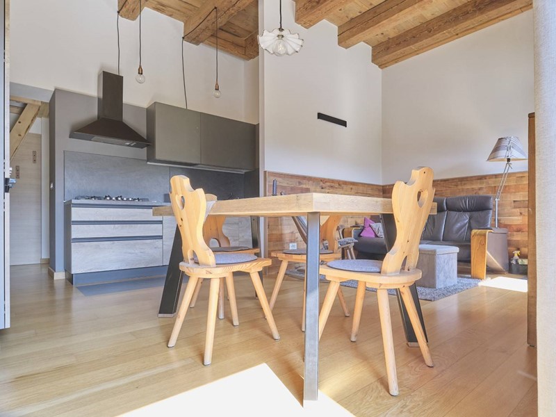 A Tarvisio Centrale in palazzina di recente ristrutturazione posta a poca distanda dalla pista ciclabile, splendido appartamento con tripla esposizione, termoautonomo , ottimamente curato e rifinito e completo dell' arredo. Composto da ingresso, soggiorno con angolo cottura e terrazza, corridoio, camera da letto matrimoniale con bagno, camera singola a due letti e bagno finestrato con doccia. Esternamente i due posti auto in uso esclusivo, uno coperto sotto la tettoia condominiale e uno scoperto. I pavimenti sono in legno nella zona giorno e nelle camere, il soffitto è con travatura a vista in legno spazzolato, i serramenti sono in legno a tenuta termica, nella zona giorno la canna fumaria con la stufa a legna. Spese condominiali contenute. Da vedere !
