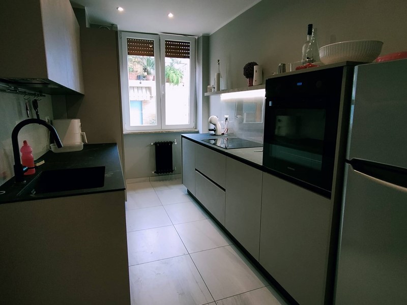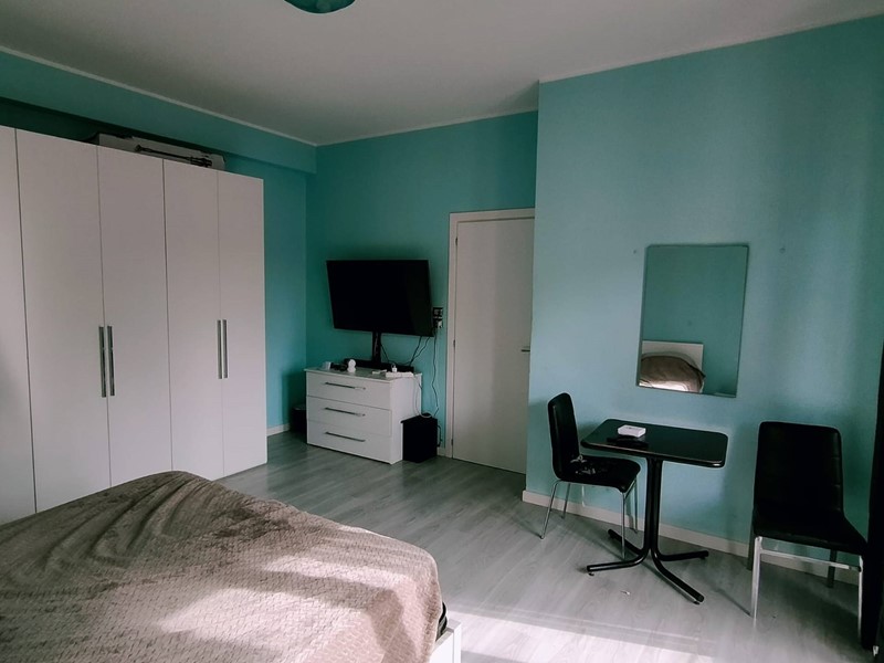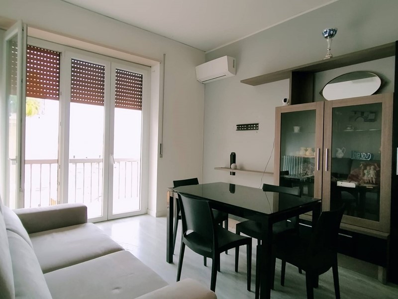 Composto da : Soggiorno, cucinotto, due camere matrimoniali, Bagno con doccia. Immobile ristrutturato nel 2014 , impianti idrici ed elettrici nuovi, infissi in alluminio con doppio vetro, Condizionatori in camera da letto e nel soggiorno. sito in zona servitissima a due passi dal centro.