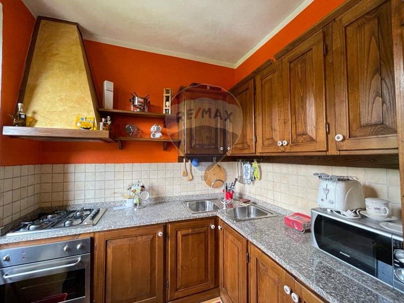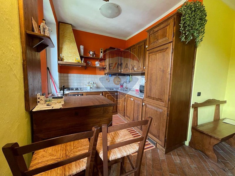 Accediamo da vialetto e scale interne a comune che conducono all'appartamento così composto: ingresso, soggiorno con camino in pietra e angolo cottura, camera doppia, camera singola, camera matrimoniale, studio e bagno con doccia idromassaggio.