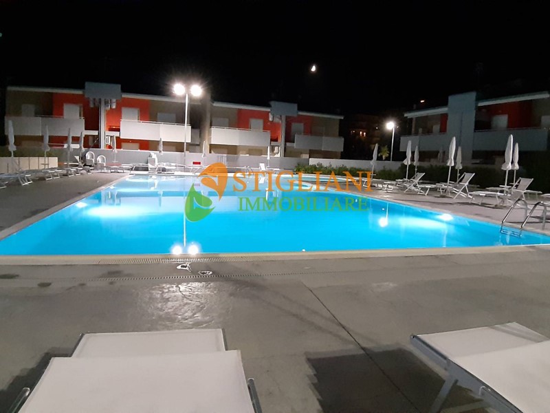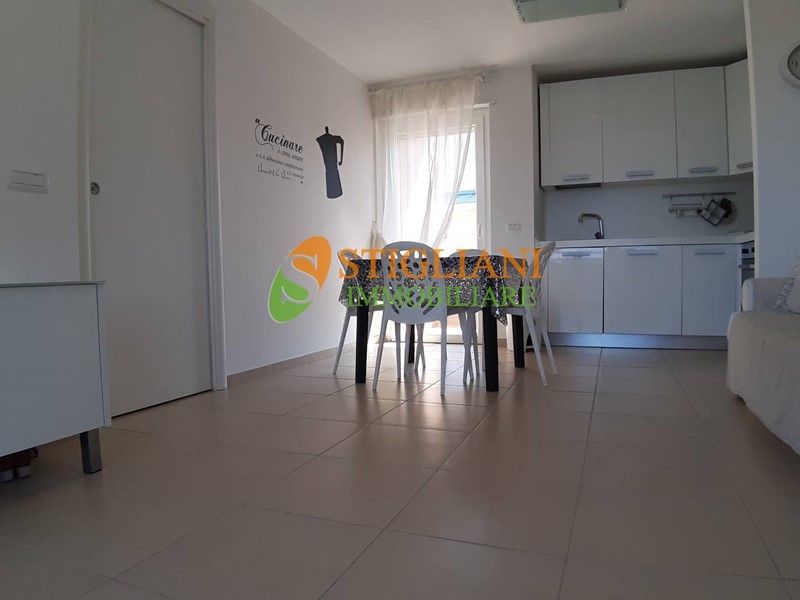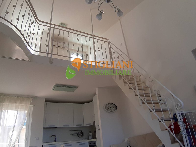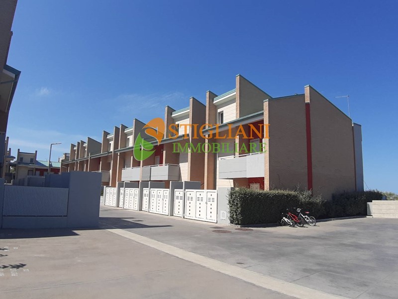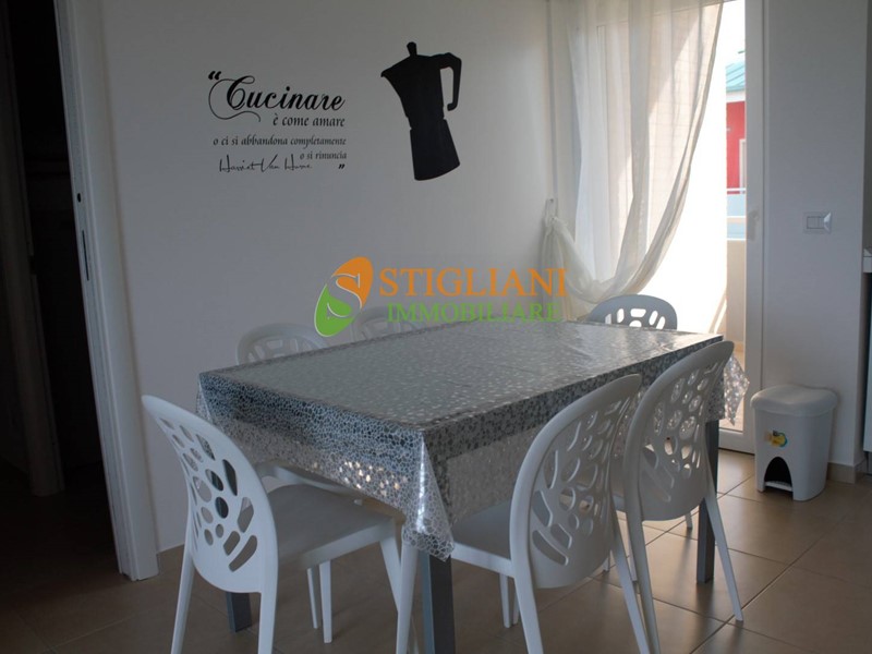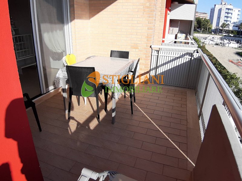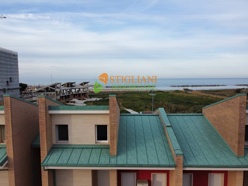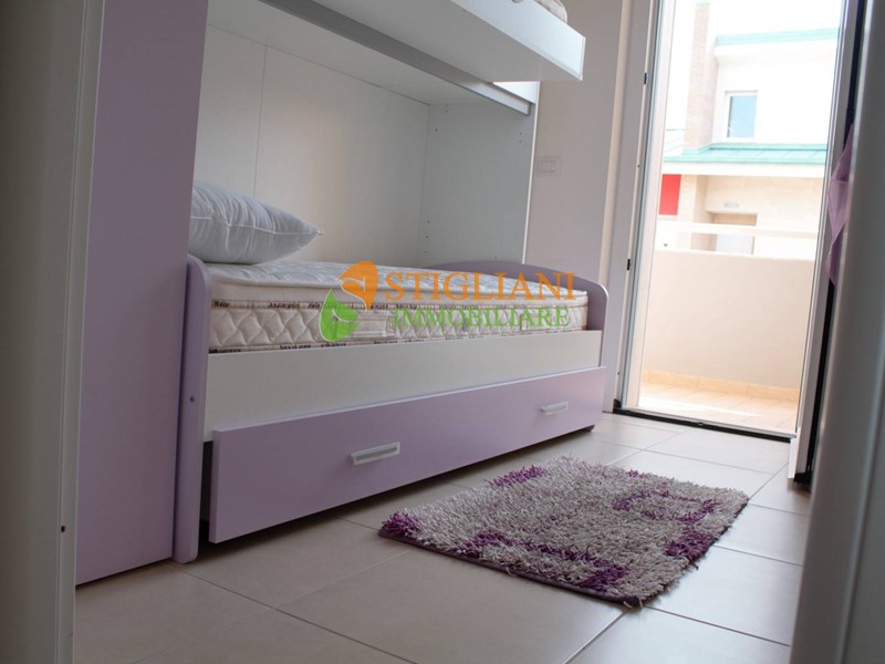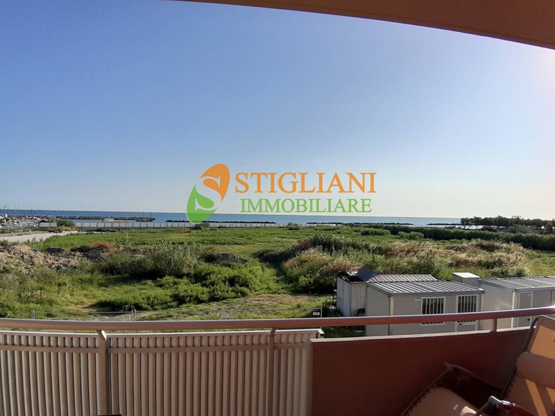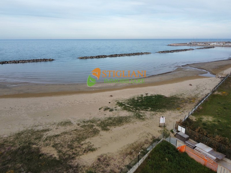 In fabbricato di nuova costruzione sul mare, appartamento arredato al piano primo di metri quadrati 85 commerciali composto da: ingresso, cucina-soggiorno con soppalco adattabile ad altra camera con bagno, due camere, bagno, ampio balcone vista mare con ripostiglio/lavanderia e posto auto esterno.