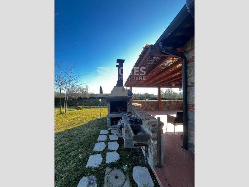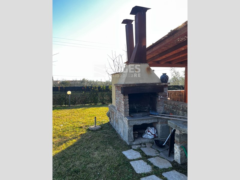 All'esterno, troviamo ampio pergolato con barbecue e forno.