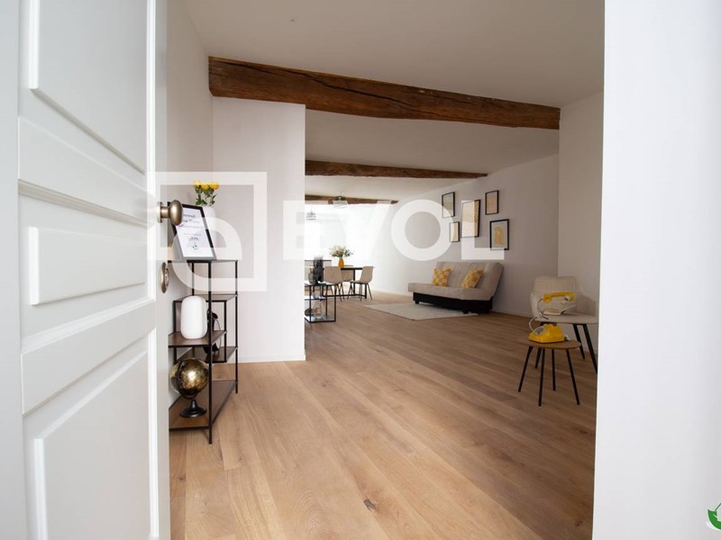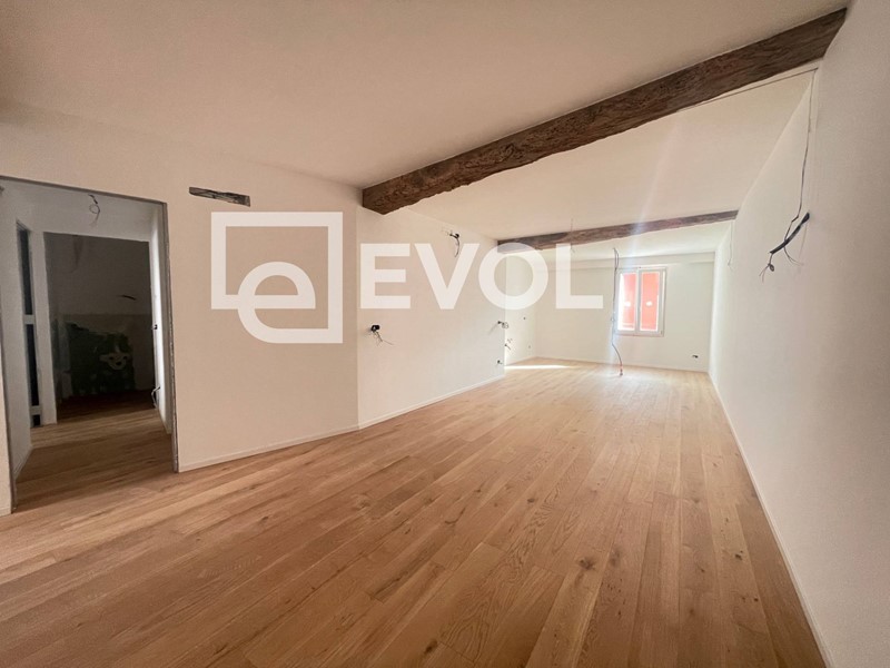 L'appartamento si trova nel secondo piano ed è stato completamente ristrutturato, conservando gli elementi storici come le travi a vista antiche. Un dettaglio questo che ci accompagna in tutto l'immobile, dove al ingresso troviamo la zona living open-space con cucina a vista, un disimpegno ci porta nel reparto notte dove troviamo una camera matrimoniale con il suo bagno, una camera singola, il secondo bagno a servizio anche della zona giorno e lo spazio lavanderia.