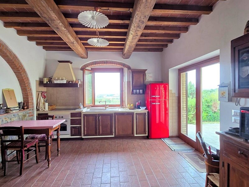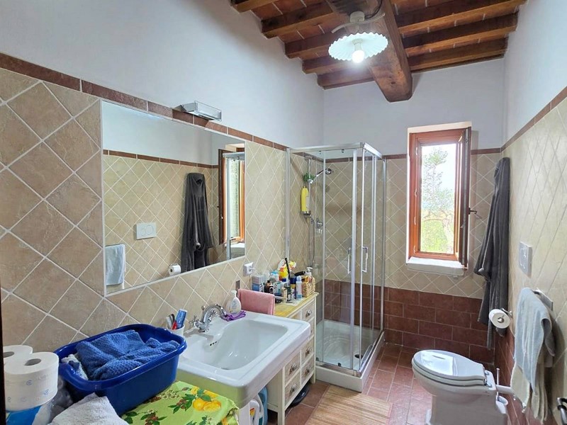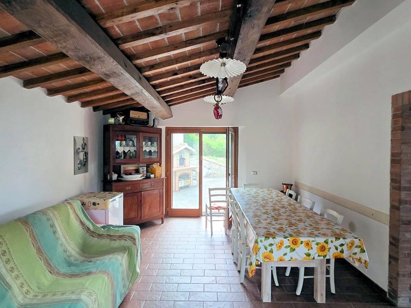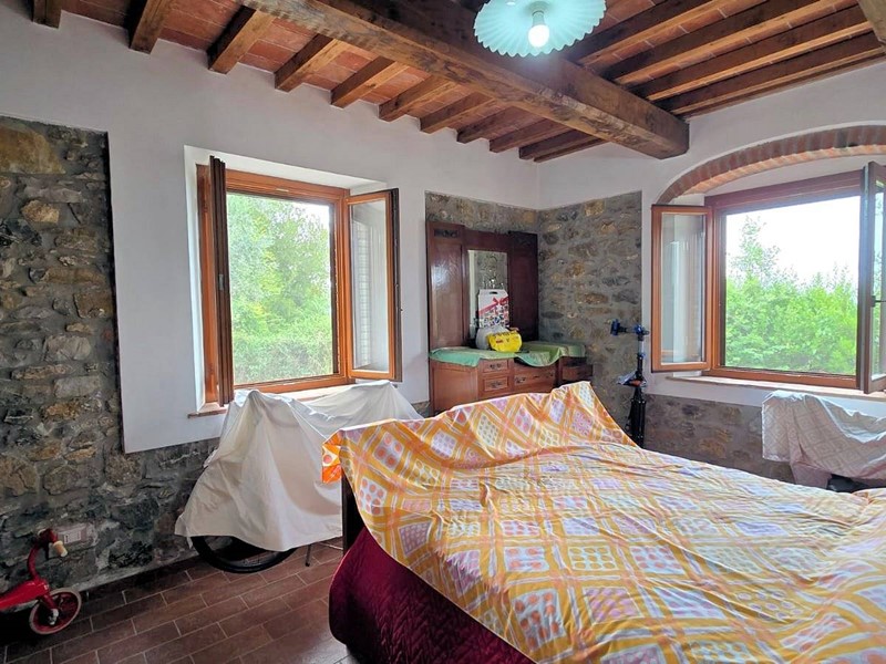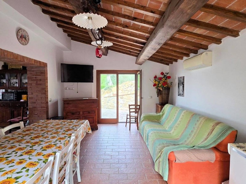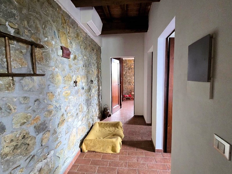 Il casale è caratterizzato dalle tipiche rifiniture rustiche Toscane con solai con travi, travetti in legno e mezzane, muri interni in pietra a faccia vista, i pavimenti in cotto, è stato ben ristrutturato nel 2014 con materiali di qualità ed è composto da ampio soggiorno con camino, cucina, camera matrimoniale, camera singola e bagno.