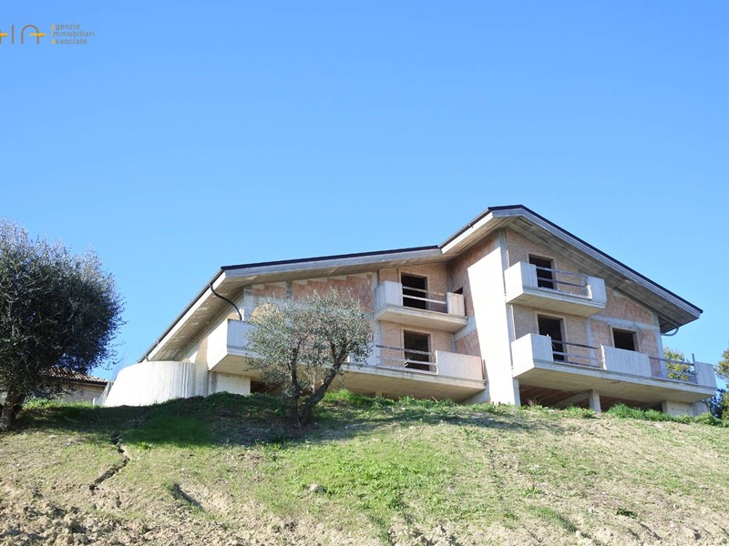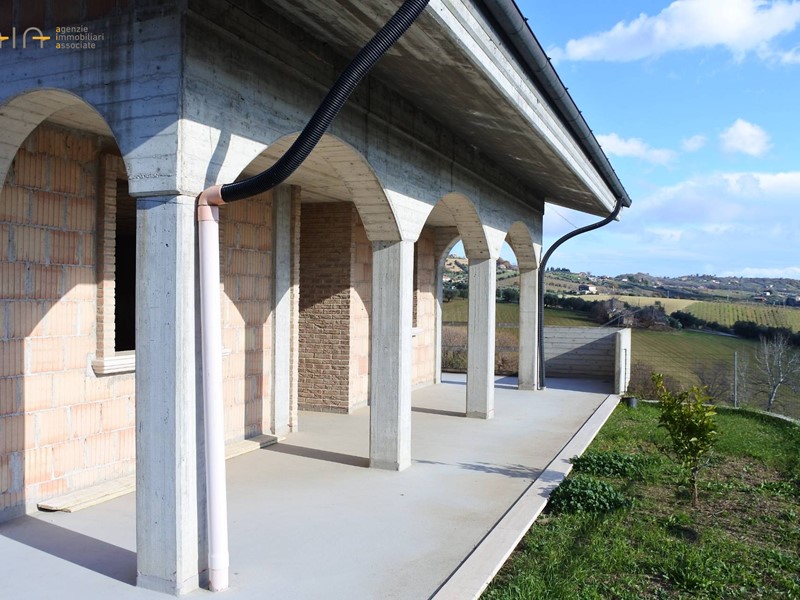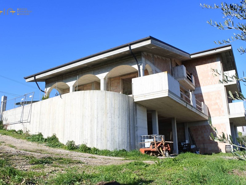 Villa singola in stile moderno, allo stato grezzo, articolata su tre piani per complessivi mq 423 circa, sita in una bellissima zona di campagna a poche centinaia di metri dal centro storico e ben servita da strada asfaltata. Magnifica la vista panoramica sulle colline circostanti, sulle montagne e sul mare.
