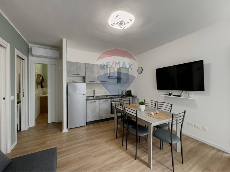 La soluzione abitativa è completamente arredata, con mobili di qualità e di design, perfettamente integrati con lo stile moderno e funzionale dell'appartamento.