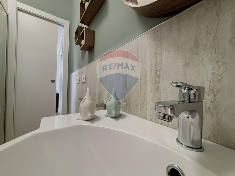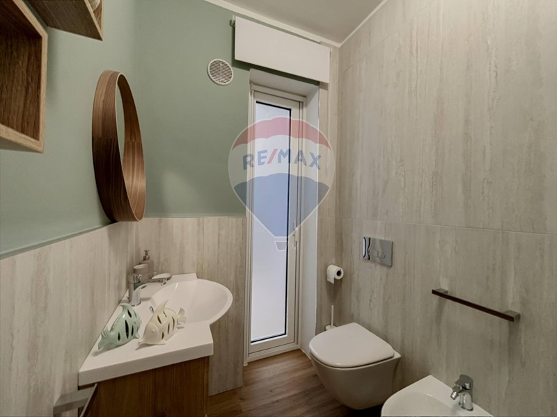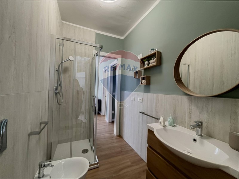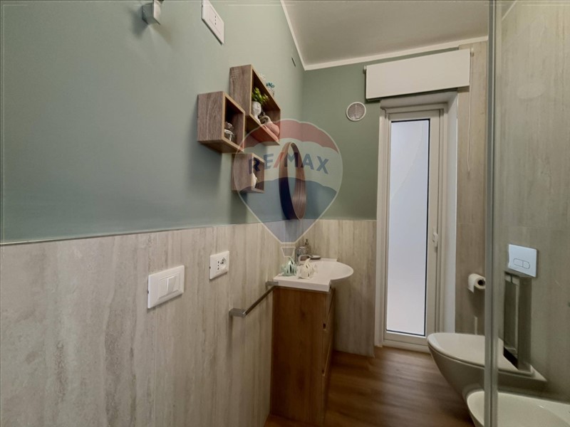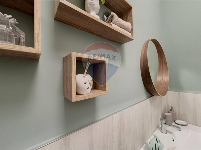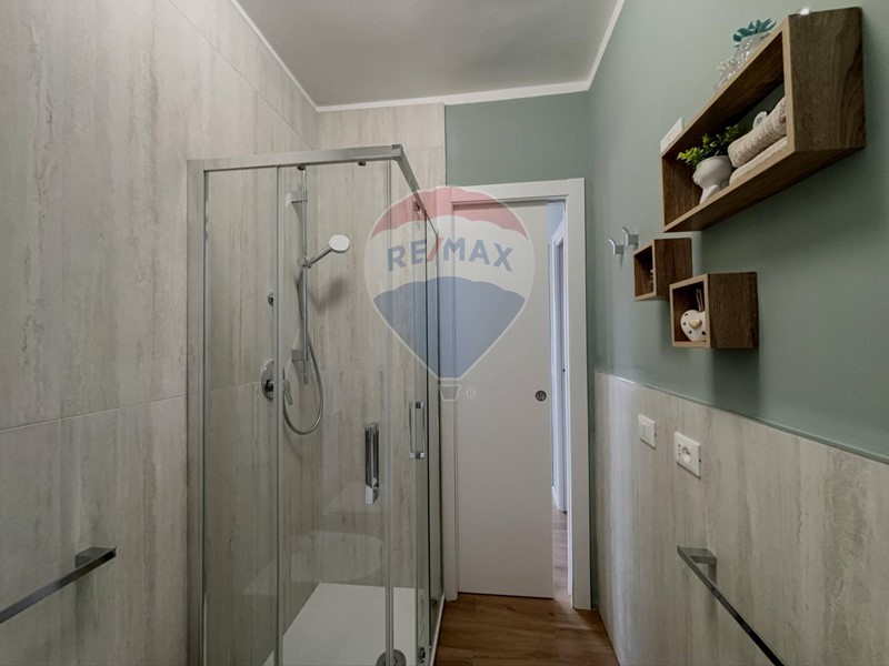 Completano l'appartamento un moderno bagno, dotato di tutti i sanitari e di una comoda doccia, e un pratico ripostiglio esterno, utile per riporre oggetti e accessori.