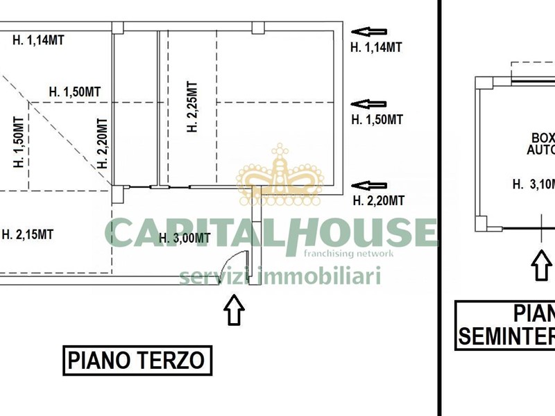 -piano terzo 90mq interni (CALPESTABILI): punto basso 1,14mt e punto alto 3,00mt per maggiori info vedi la foto n. 2 del presente annuncio;