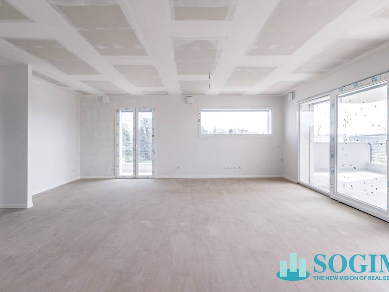 All'interno del nuovo condominio Era Living in via Toscana proponiamo quadrilocale al piano secondo così composto: ingresso, soggiorno servito da terrazzo di 50 mq orientato a sud - est, cucina a vista, camera matrimoniale, due camere singole, due servizi e una lavanderia.