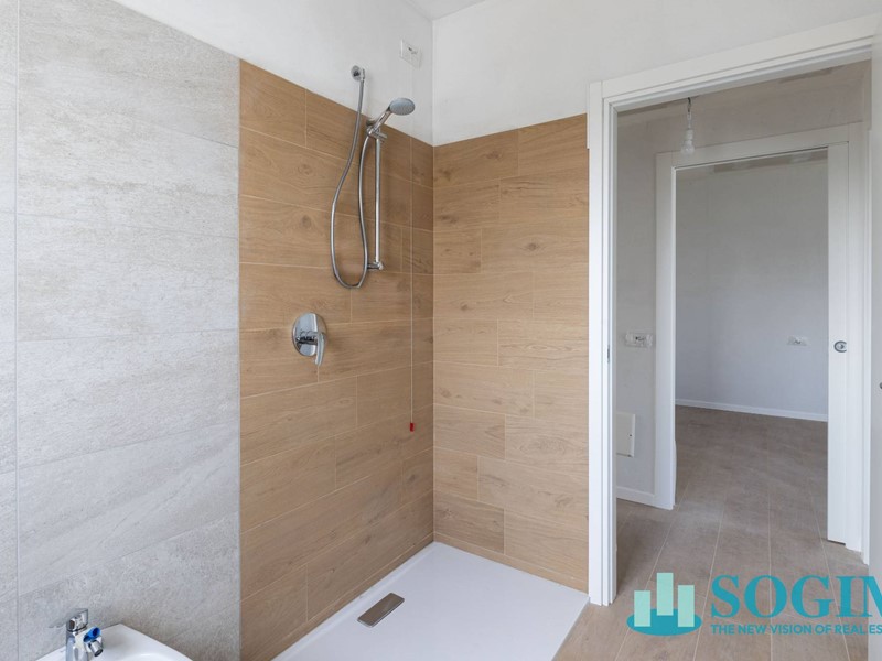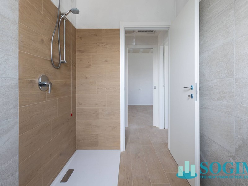 L'appartamento è stato rifinito come pavimentazione con piastrelle in gress porcellanato effetto legno, bagni effetto legno e pietra, riscaldamento e raffrescamento a pavimento, deumidificatore, ventilazione forzata e domotica per controllo centralizzato delle funzioni anche attraverso app.