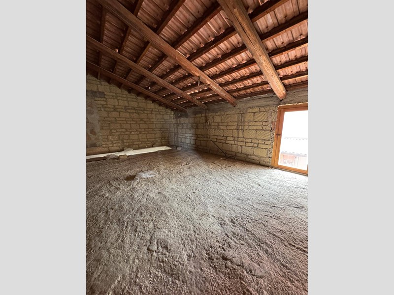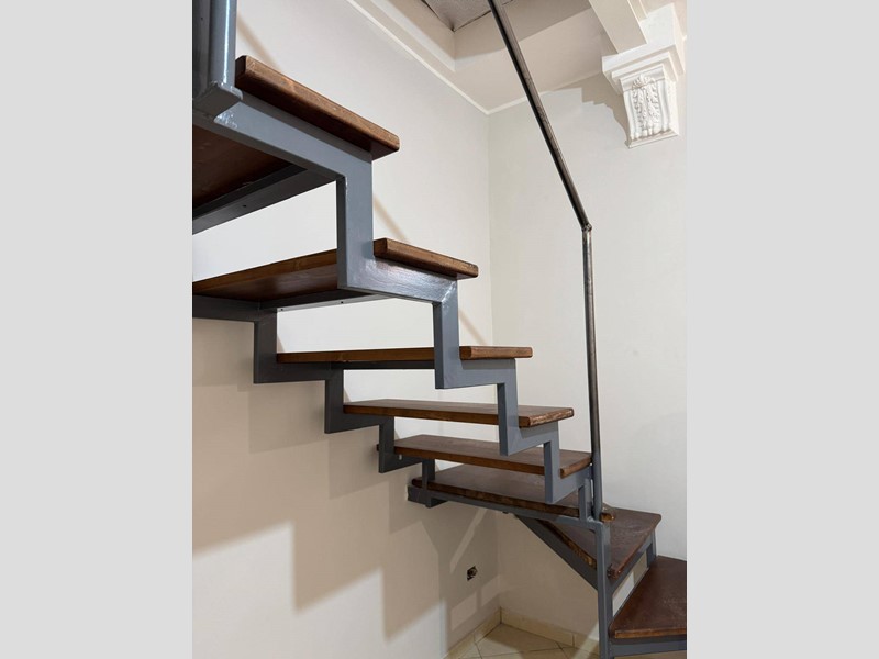 Una comoda scala presente in salotto in ferro e legno conduce al piano superiore ,dove troviamo un sottotetto allo stato grezzo di 70mq.