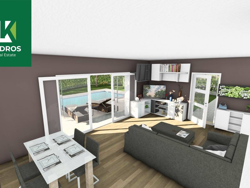 L'abitazione è disposta su 2 piani per 150 mq. complessivi, ed ha un terreno di pertinenza di circa 750 mq. finito e prato e piantumato. Su richiesta è possibile realizzare una piscina con un costo indicativo di circa 35.000.
